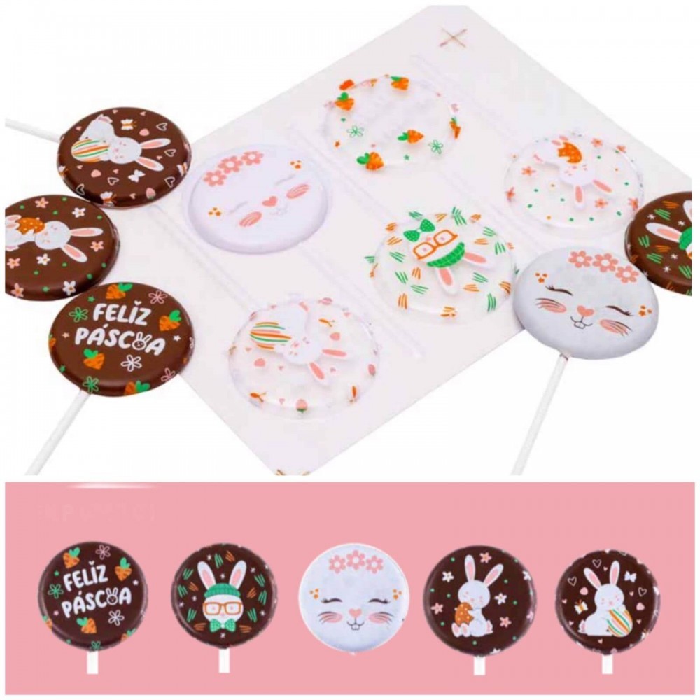 Blister Decorado com Transfer para Chocolate Pirulito de Páscoa 5,5cm BLP0157 - 1 unidade - Stalden