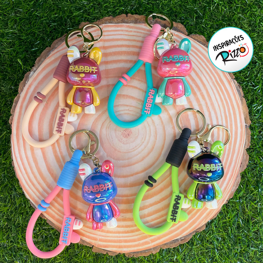 Chaveiro Coelho Metalizado - Rosa e Verde Água - 6cm - 1 unidade - Rizzo