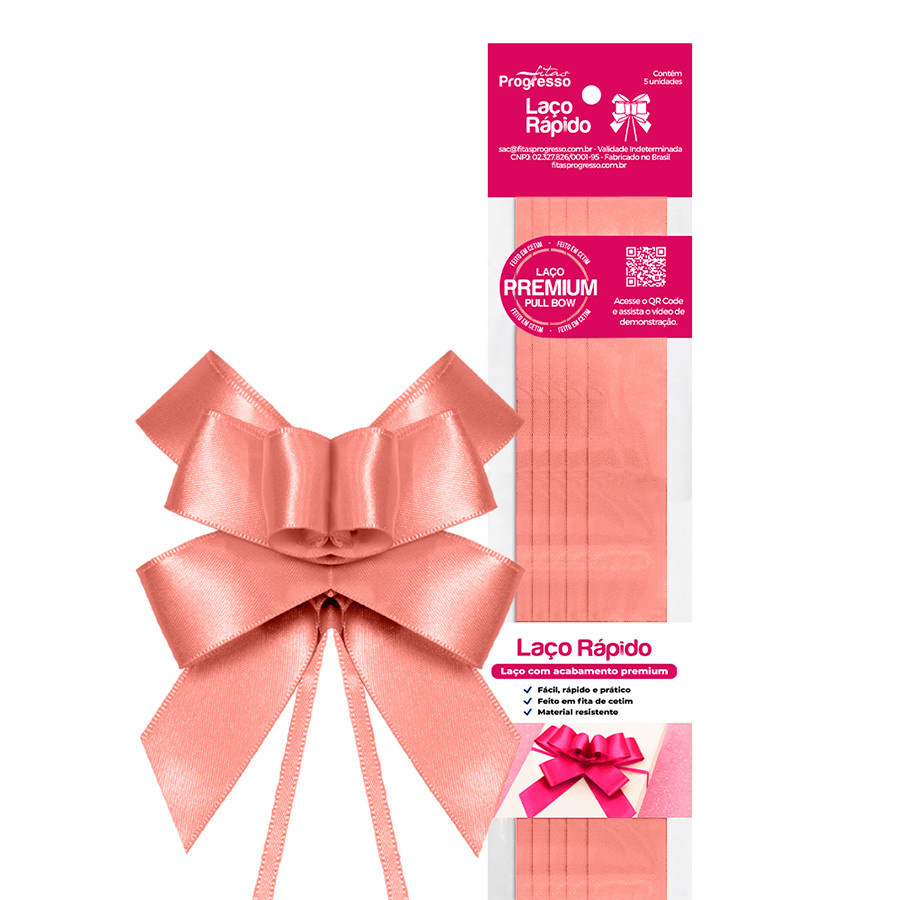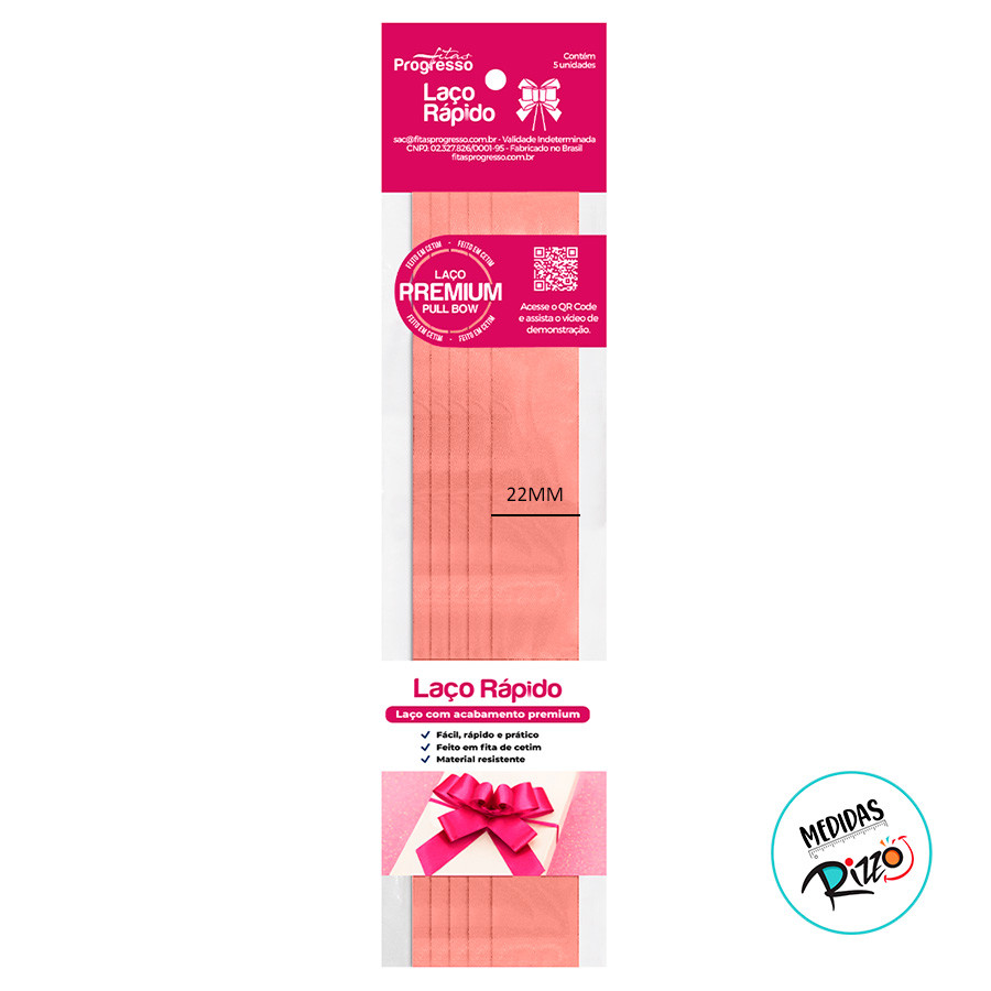 Laço Fácil de Fita de Cetim - Rosa Vermelho - 22mm - 5 unidades - Progresso - Rizzo