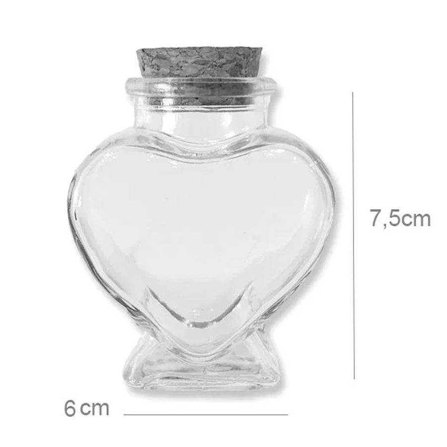 35 Potes de Vidro Com Tampa Rolha Coração Tempero Doce 70ml