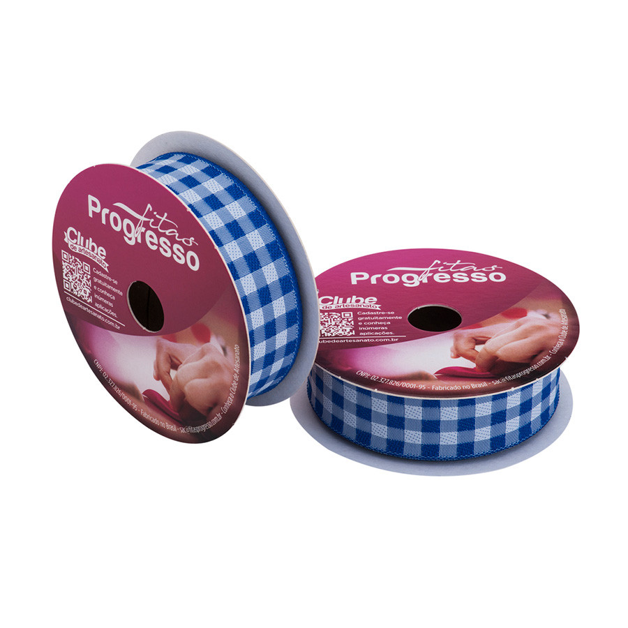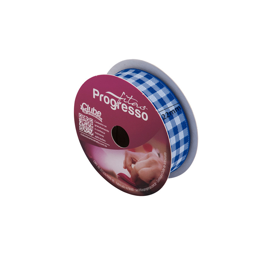 Fita de Cetim 10m x 22mm - Cor 214 - Xadrez Azul Royal - Rolo 10 metros - 1 unidade - Progresso - Rizzo