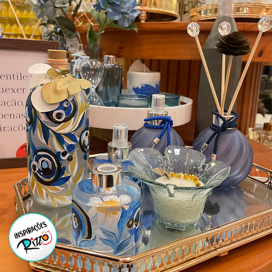 Válvula Pump Reto - Floral Branco e Azul - 1 unidade - Rizzo