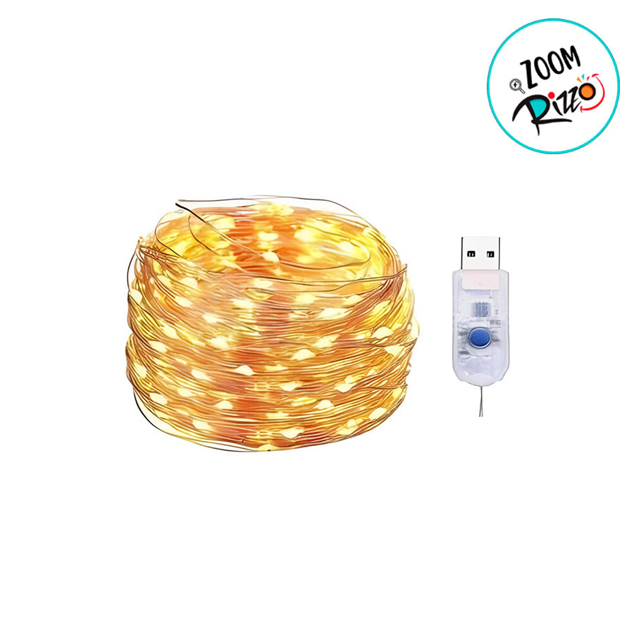 Cordão de LED Fio de Fada Amarelo USB - 10 Metros - 1 unidade - Rizzo