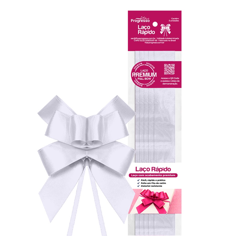 Laço Fácil de Fita de Cetim - Branco - 22mm - 5 unidades - Progresso - Rizzo