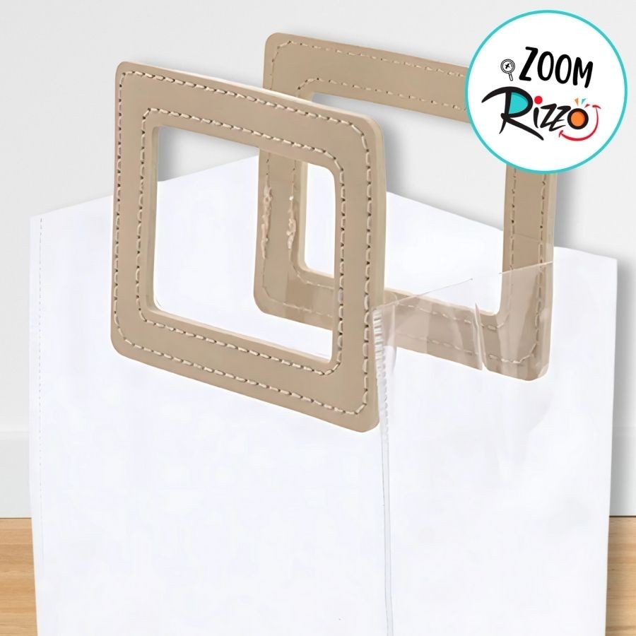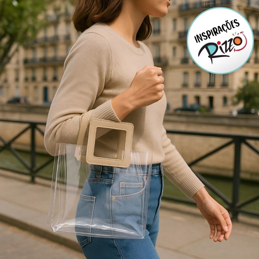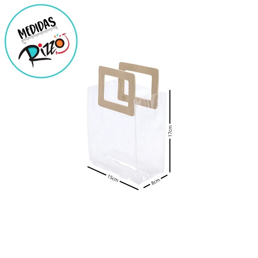 Sacola Transparente PVC Com Alça Retangular Couro Bege - 16,4x14,2x7,3cm