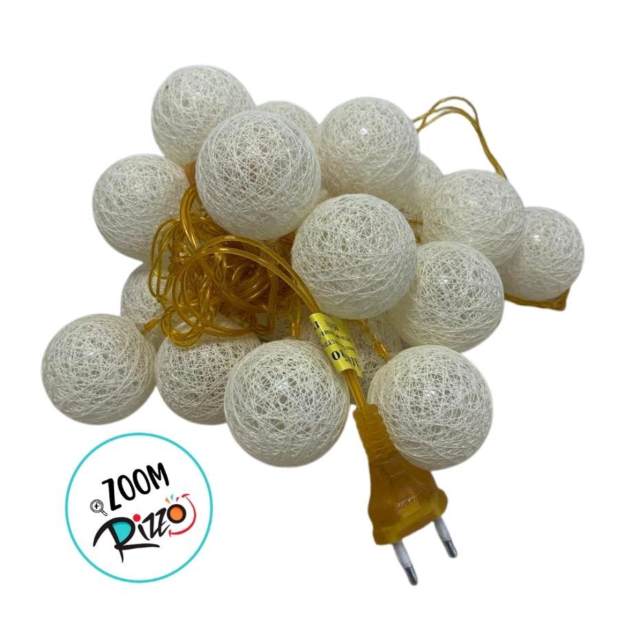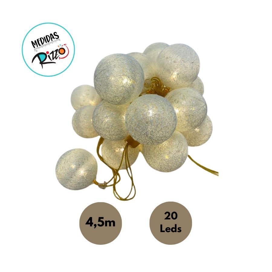 Cordão de LED Bola Barbante Branco Quente com Fio Dourado 20 Leds 110V - 4,5m - 1 unidade - Rizzo