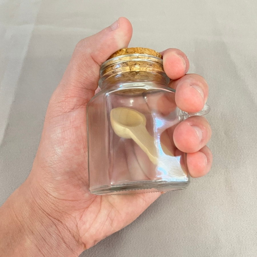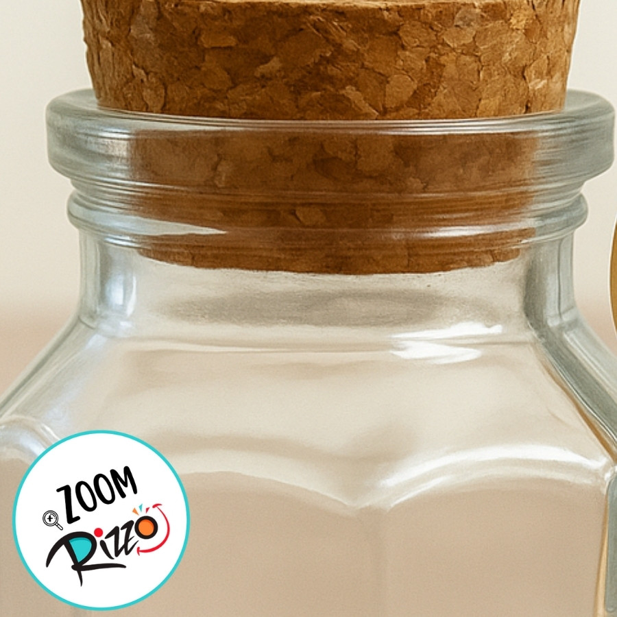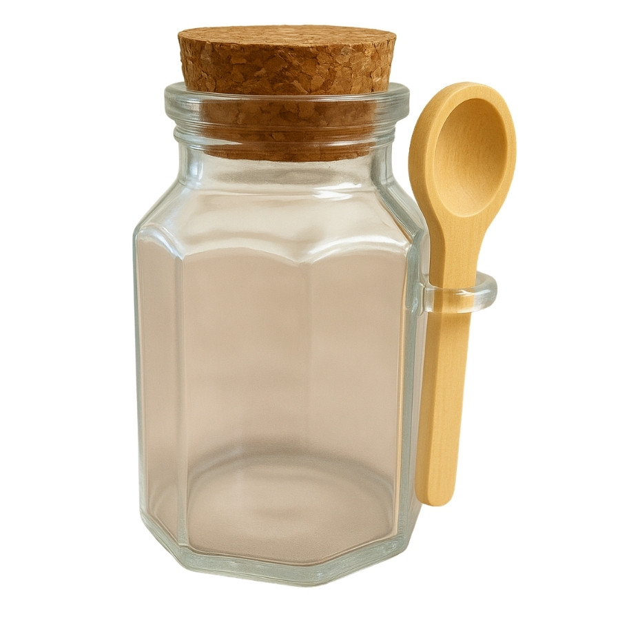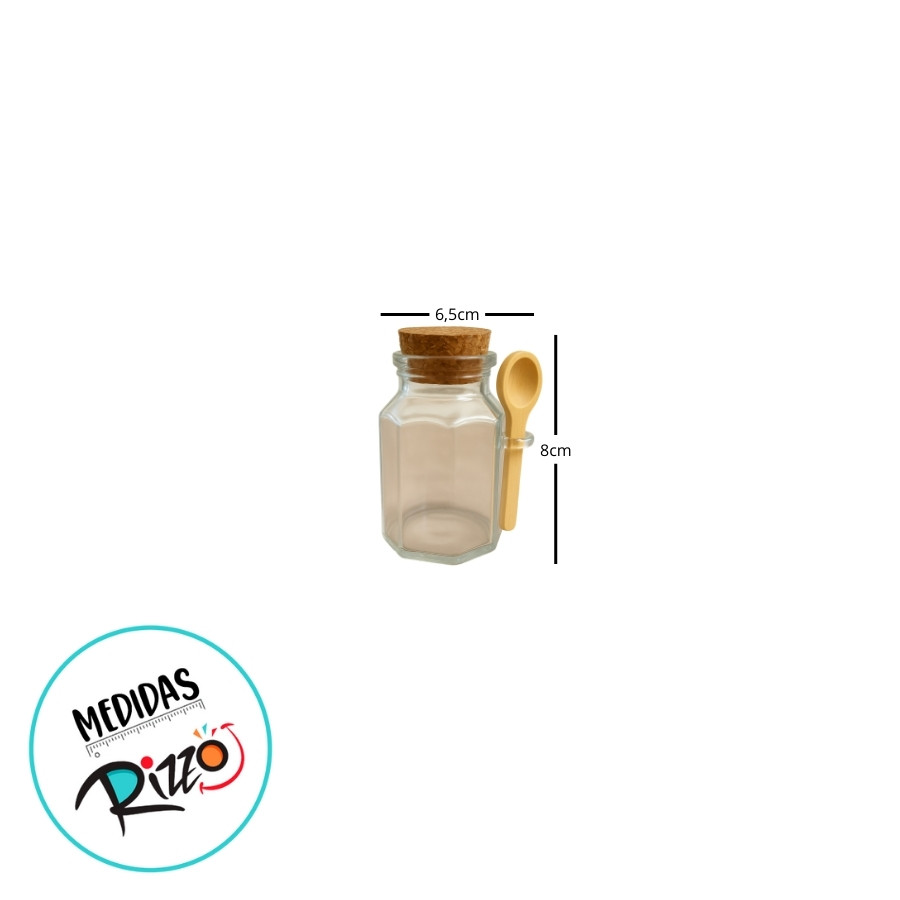 Mini Pote de Vidro Octogonal com Tampa de Rolha e Colherzinha de Madeira – 5,5x8x6,5cm - 80 ml - 1 unidade - Rizzo