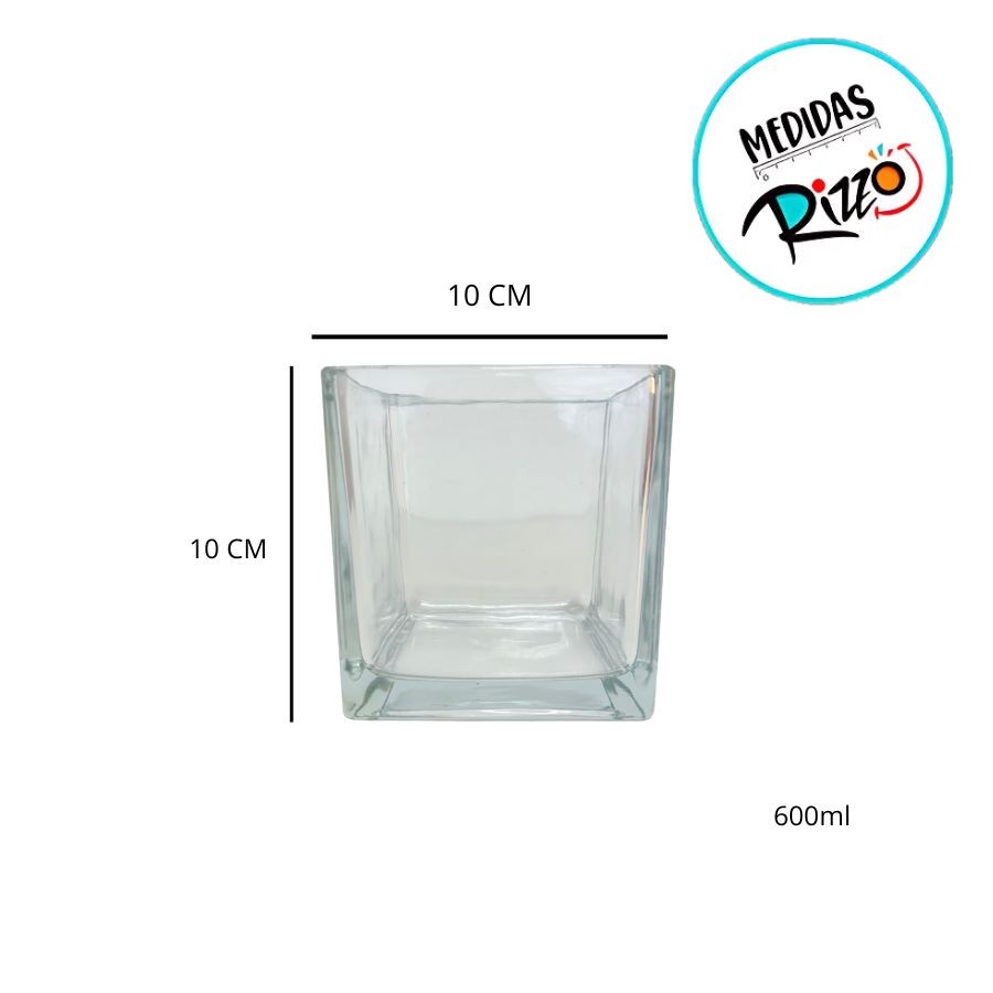 Pote De Vidro Quadrado - 10x10cm - 600ml - 1 unidade - Rizzo