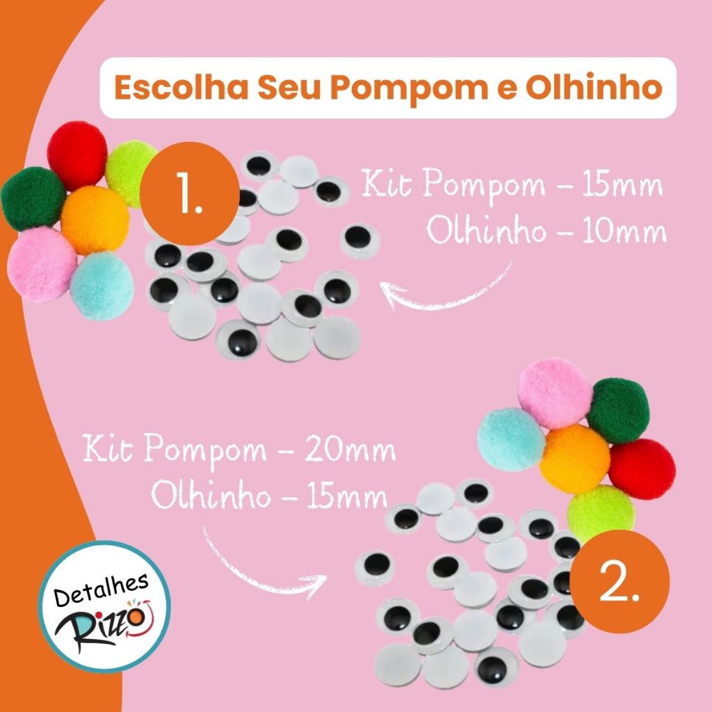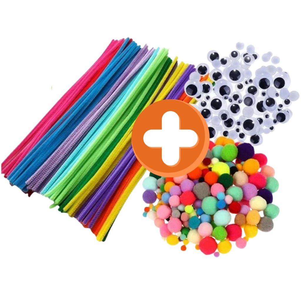 Kit 300 pçs Haste de chenille Pompom Olhinhos movel Montessori
