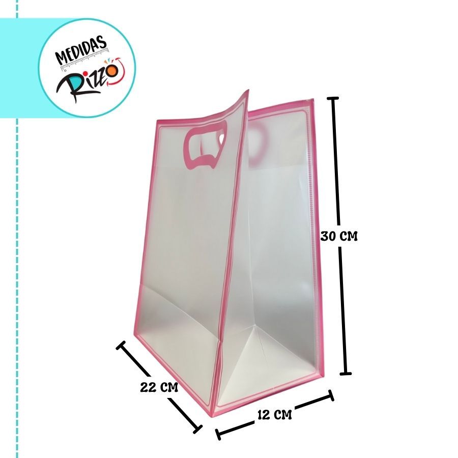 Sacola Transparente Fosca Horizontal Pvc Alça Plana Rosa Claro - 22x30x9cm - 1 unidade - Cromus - Rizzo