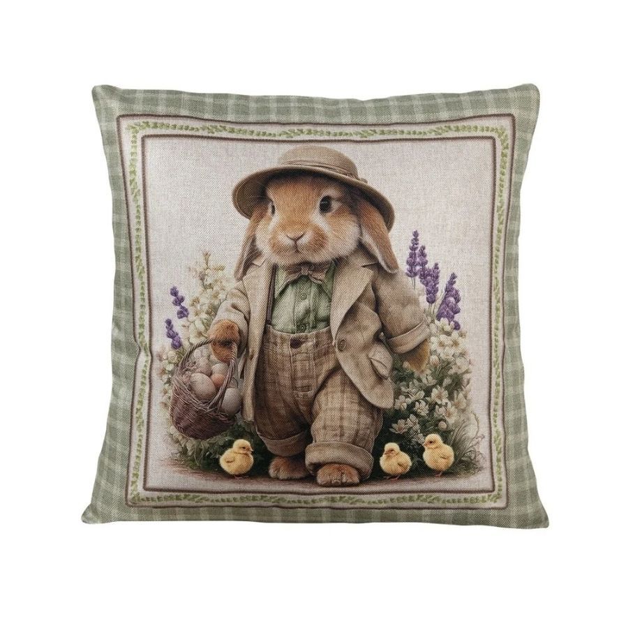 Capa para Almofada de Páscoa Premium - Coelho de Chapéu e Gravata - Xadrez Verde - 43x43cm - 1 unidade - Rizzo