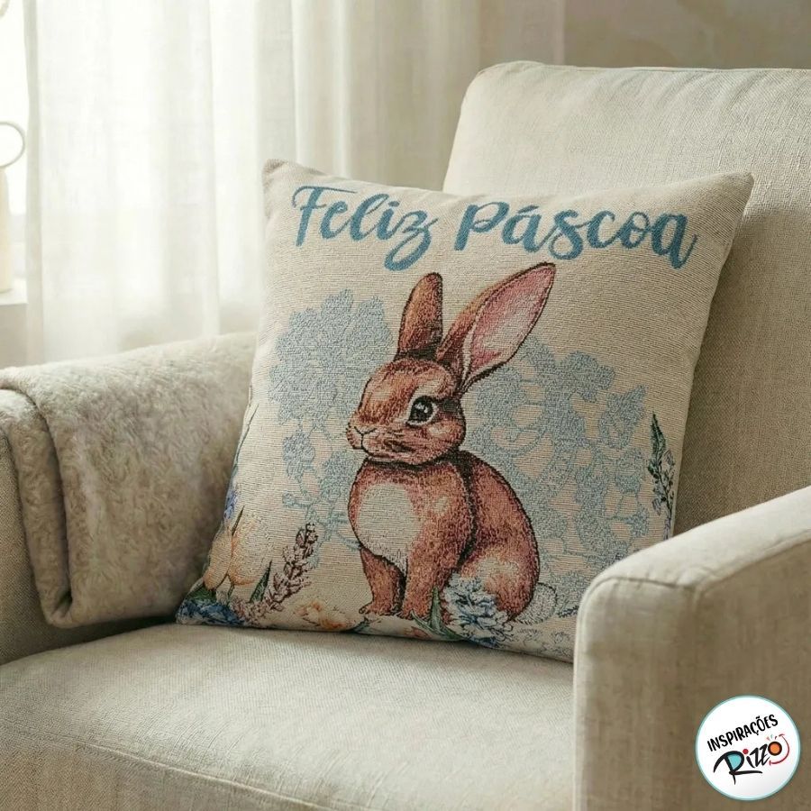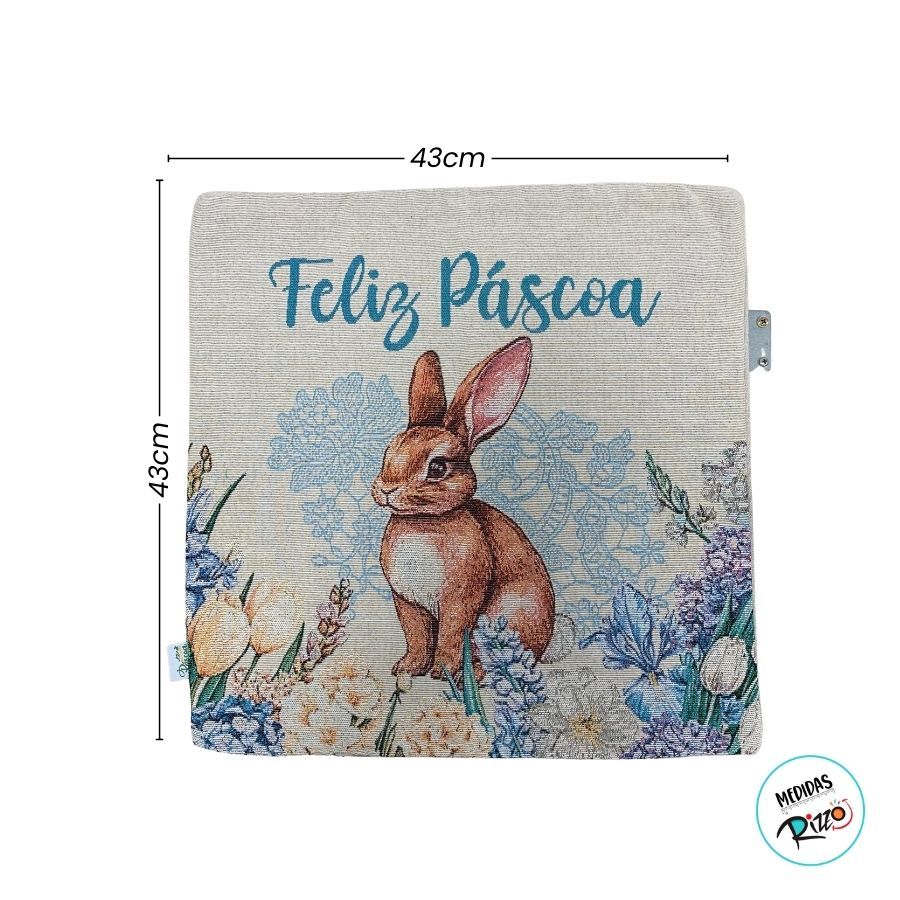 Capa para Almofada Páscoa - Coelho Bordado "Feliz Páscoa" - Azul - 43x43cm - 1 unidade - Rizzo