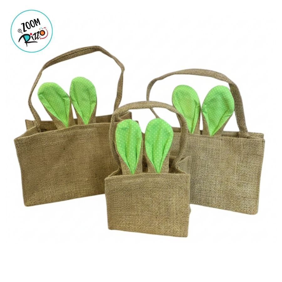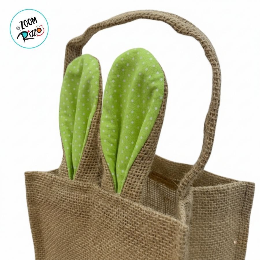 Cesta de Juta de Páscoa com Orelha Verde Claro Poá Branco - 1 unidade - EcoArt - Rizzo
