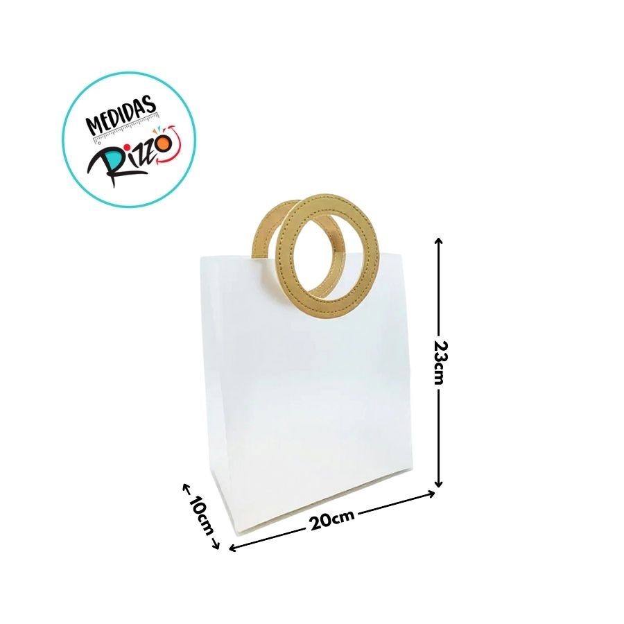Sacola Transparente Fosca PVC com Alça Redonda de Couro Dourado - 23x20x10cm - 10 unidades - Rizzo
