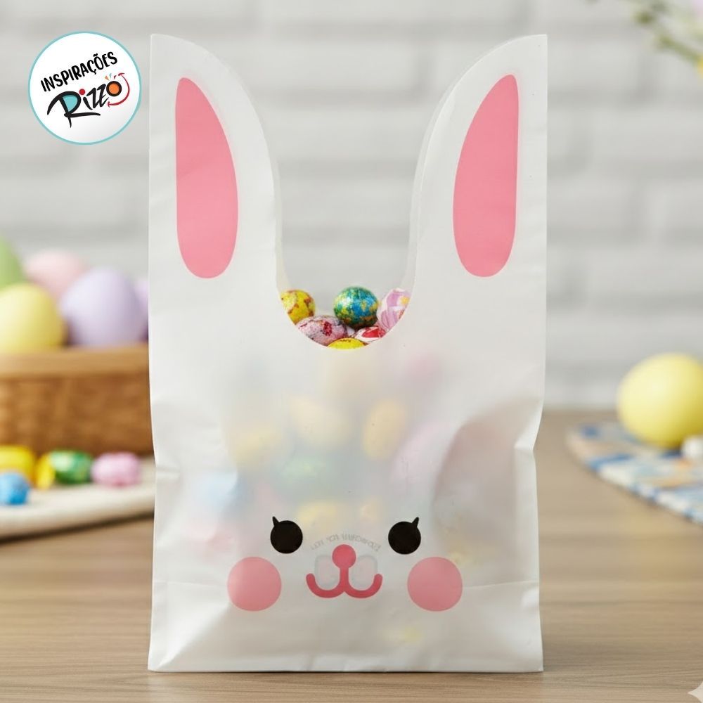 Saquinho Plástico de Páscoa - Coelhinho Rosa - 22x13,5cm - 50 unidades - Rizzo