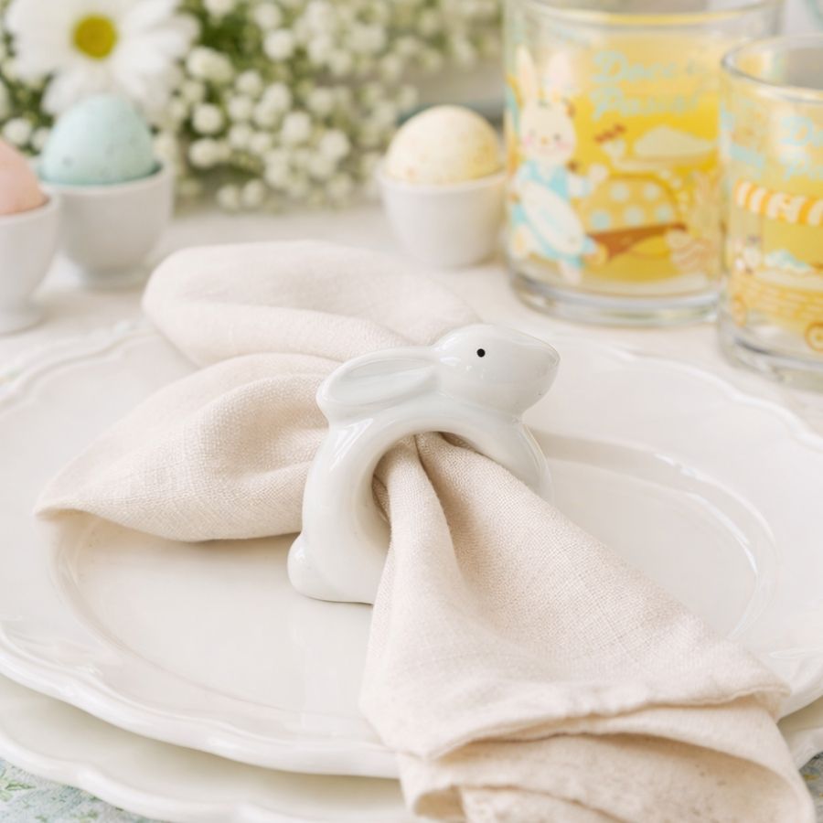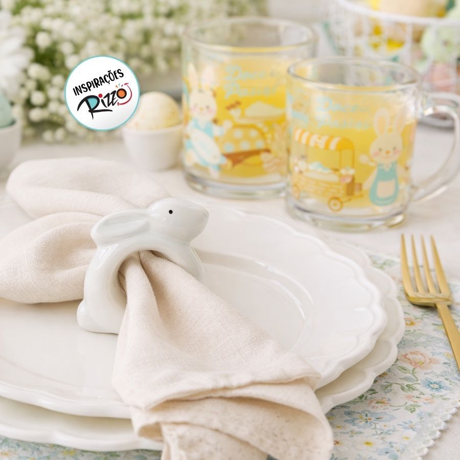 Porta Guardanapo de Páscoa em Porcelana - Coelho - Branco - 7x8cm - 1 unidade - Rizzo