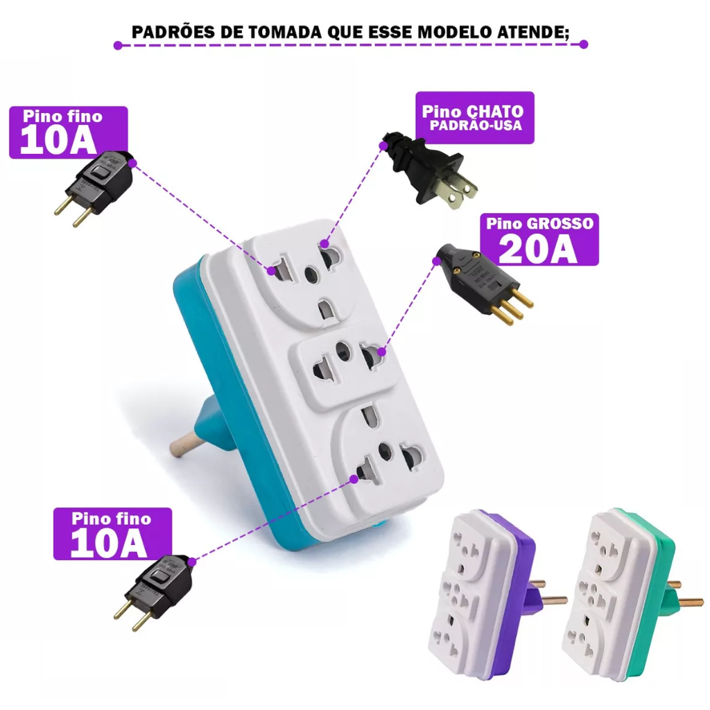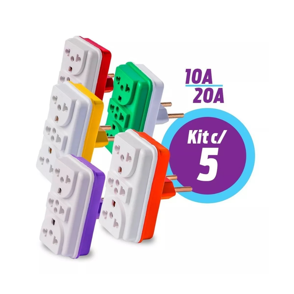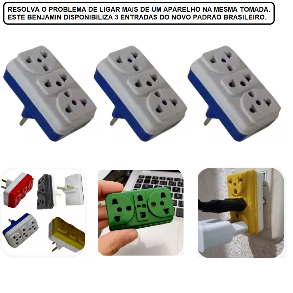 Kit 10 Adaptador de Tomada Benjamin T Triplo Colorido Universal 3 Entradas 10A 20A para Casa
