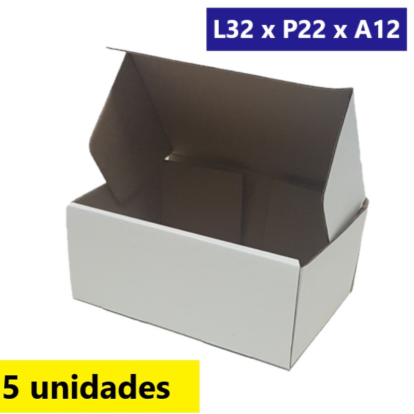 Caixa de Papelão branca para Correio Sedex/pac 32x22x12cm Kit 5