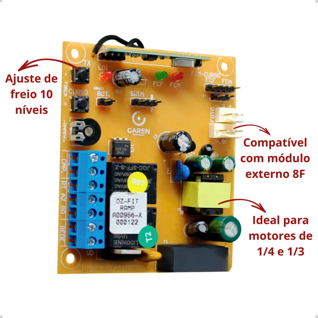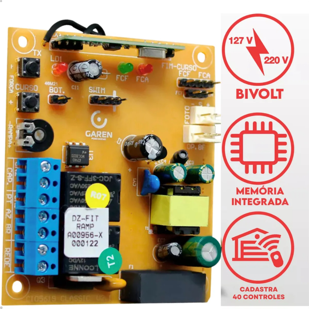 Central DZ FIT Ramp V2.2 DK1203 Bivolt 127/220V Frequência 50/60Hz Placa Eletrônica Motor Portão Garen