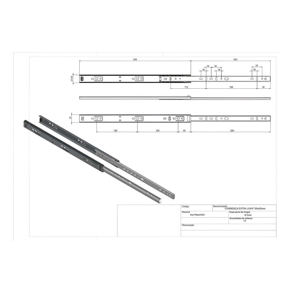 5 Pares Corrediça Telescópica 35cm Para Gaveta Trilho Reforç