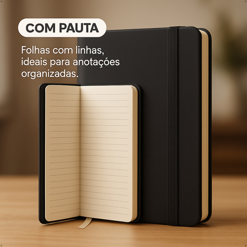 Kit 2 Cadernetas Tipo Moleskine 80 Folhas Caderno de Anotações com Pauta Profissional Elegante