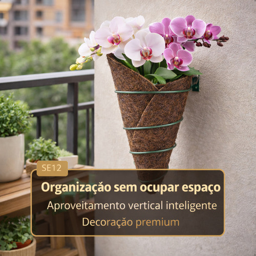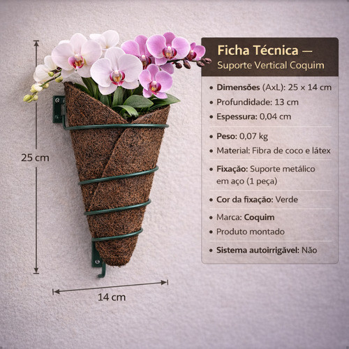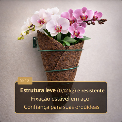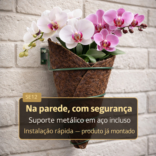 Suporte Vaso De Orquídea Para Parede 25cm Ferro Fibra Coquim Marrom-escuro