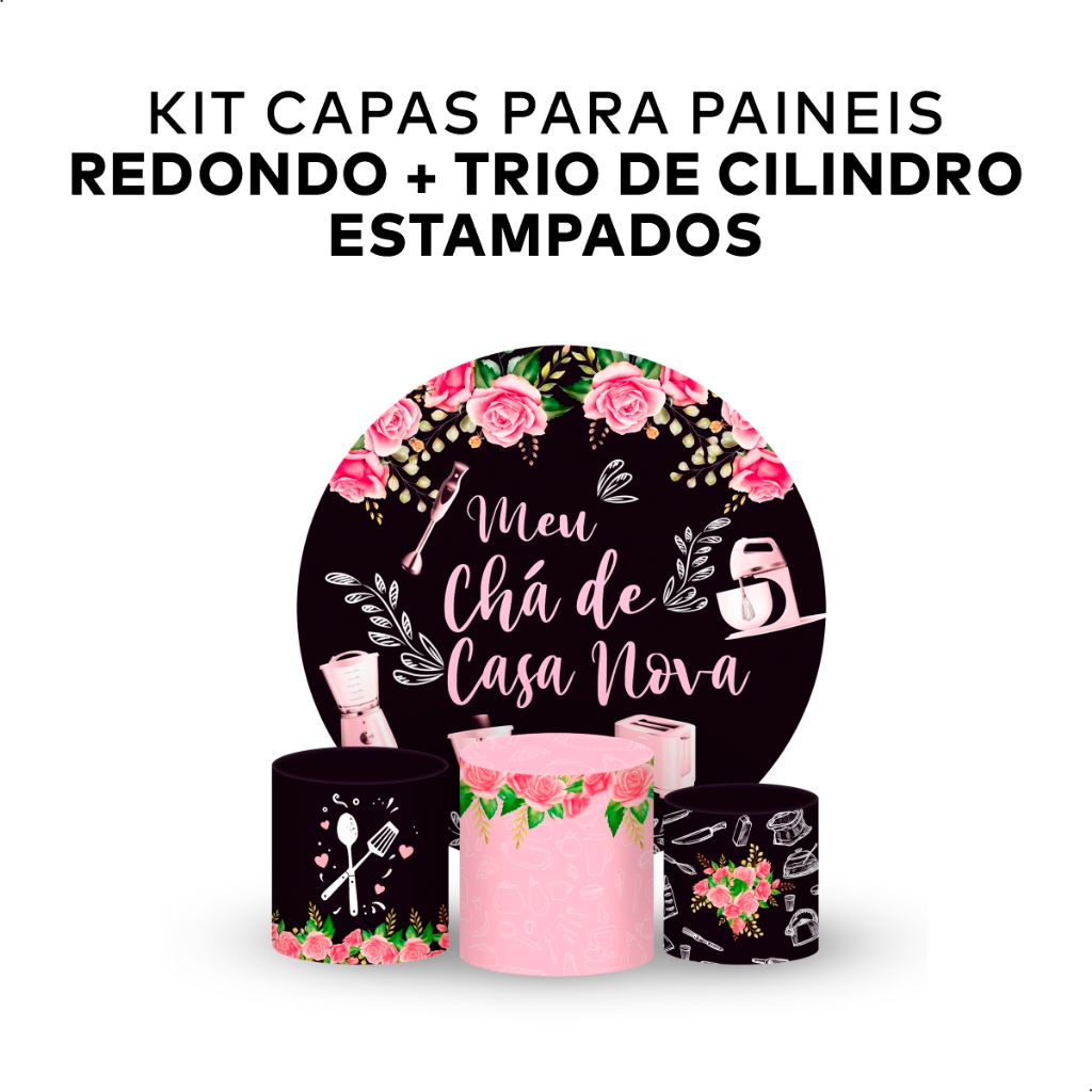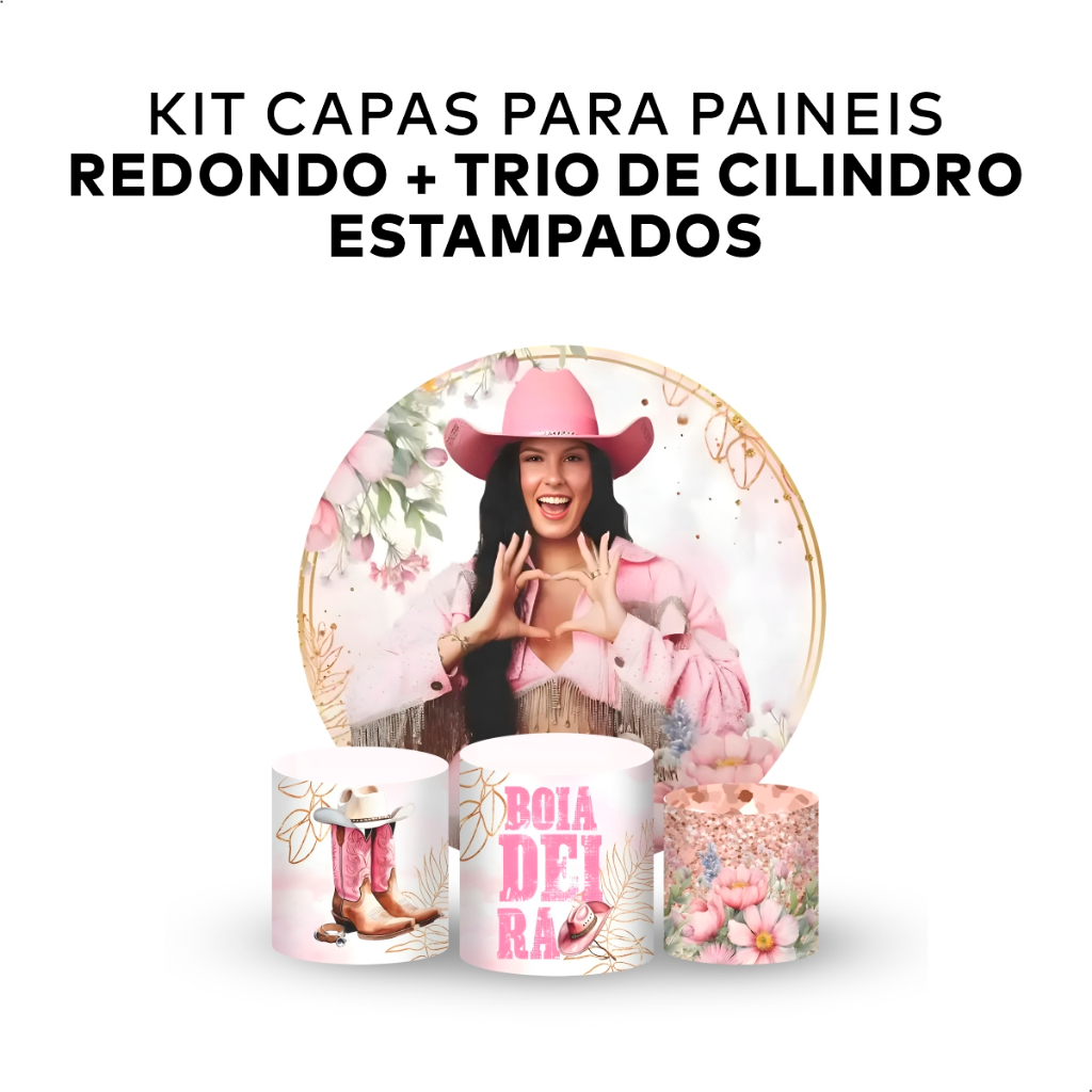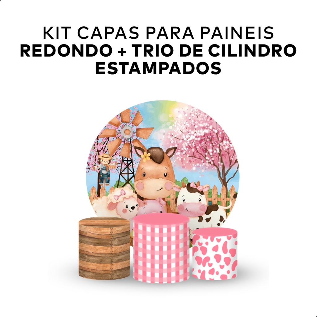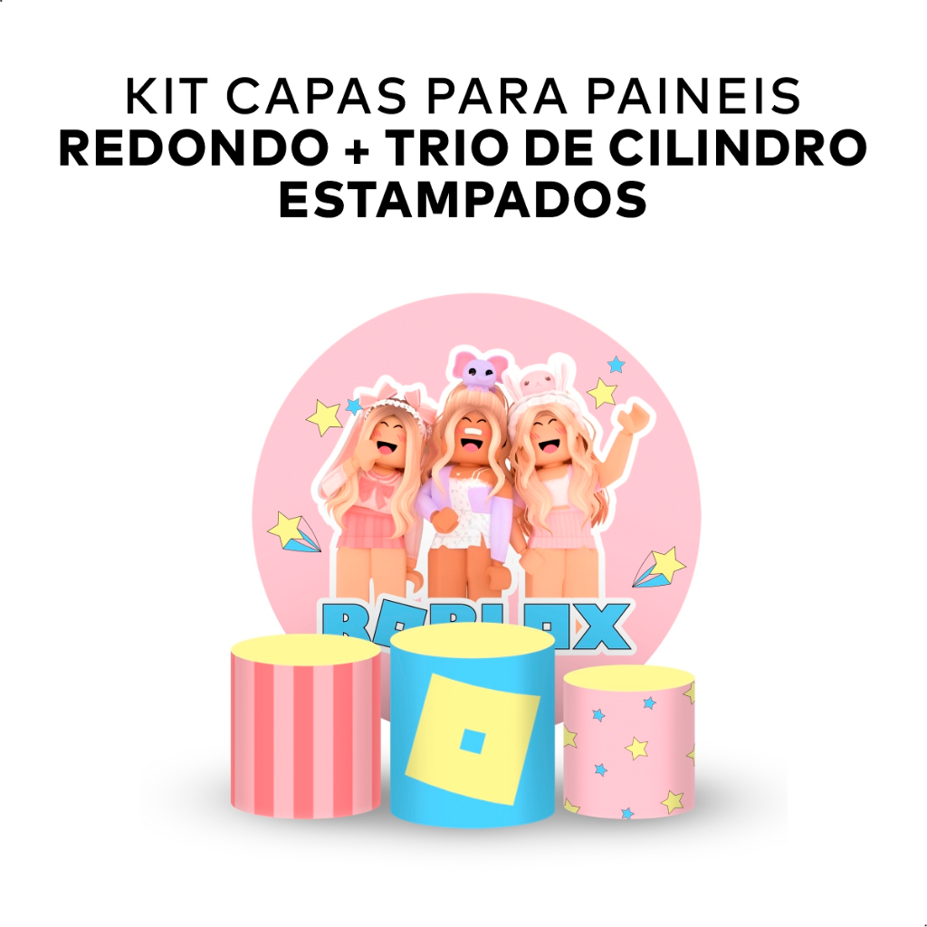 KIT DECORAÇÃO PAINEL REDONDO + TRIO DE CILINDROS TEMA MENINA TENDÊNCIA IDEAL PARA PEGUE E MONTE