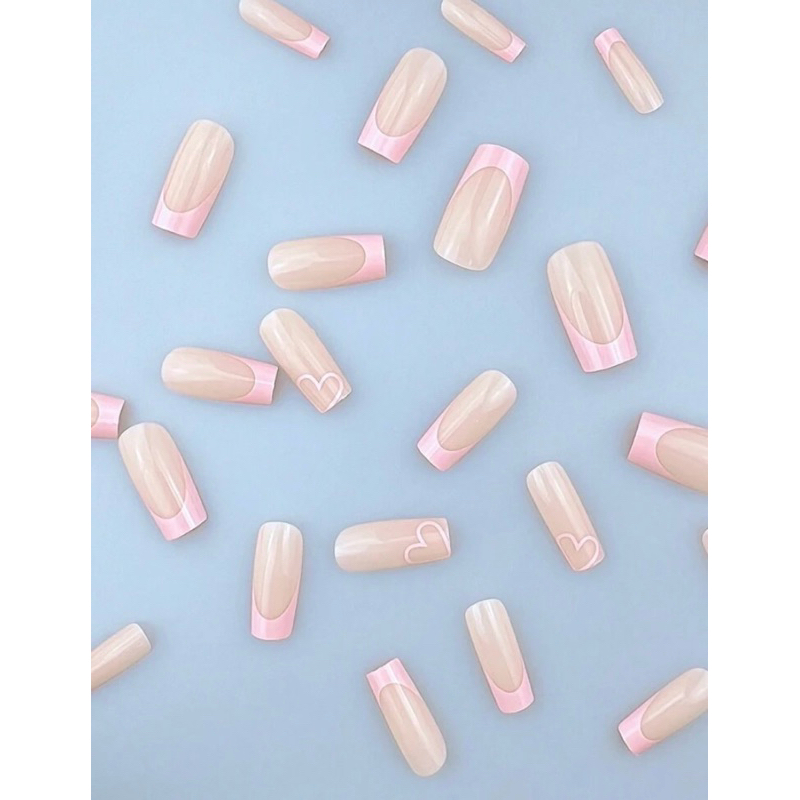 kit unhas postiças realista decorada quadrada francesinha rosa