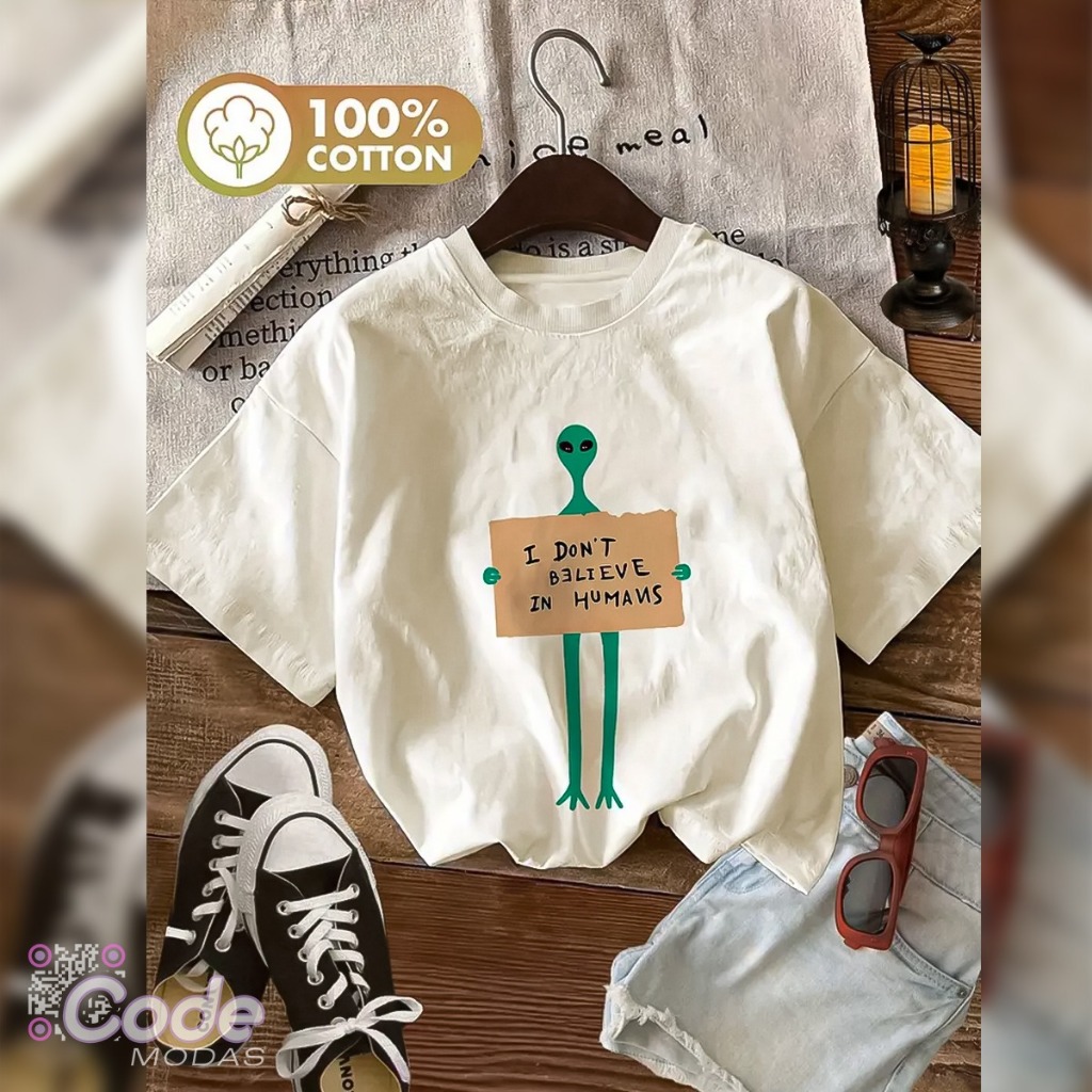 Camisa Camiseta T-Shirt I don't believe in humans Estilo Vintage Algodão Aesthetic