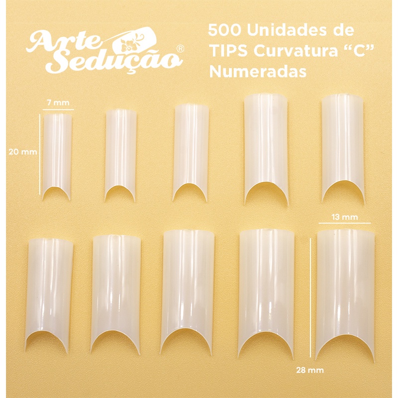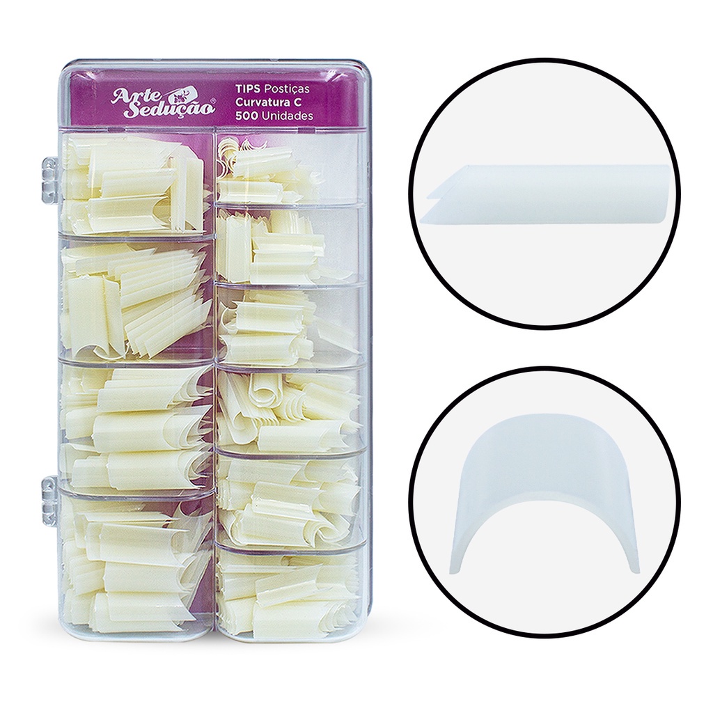 Tips Unhas Postiças Curvatura C 500 Unidades, Arte Sedução