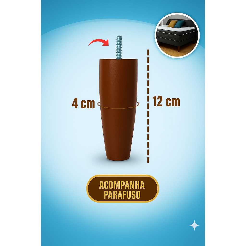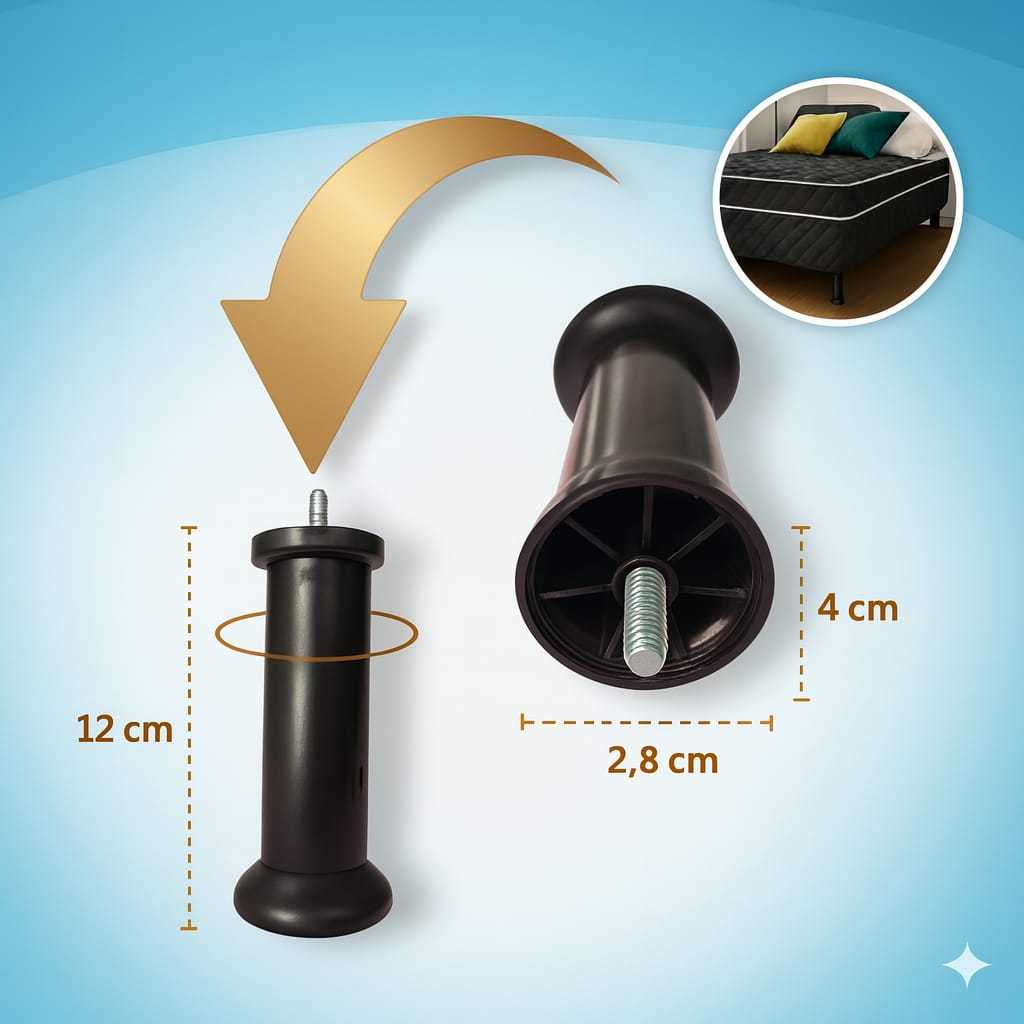 Pé para Cama Box 12cm Alto Resistente | 1-12 Unidades | Casal Queen Super Queen Solteiro