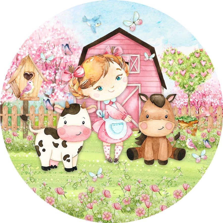 Painel Redondo Tecido Sublimado 3D Fazendinha Rosa FRD-5029
