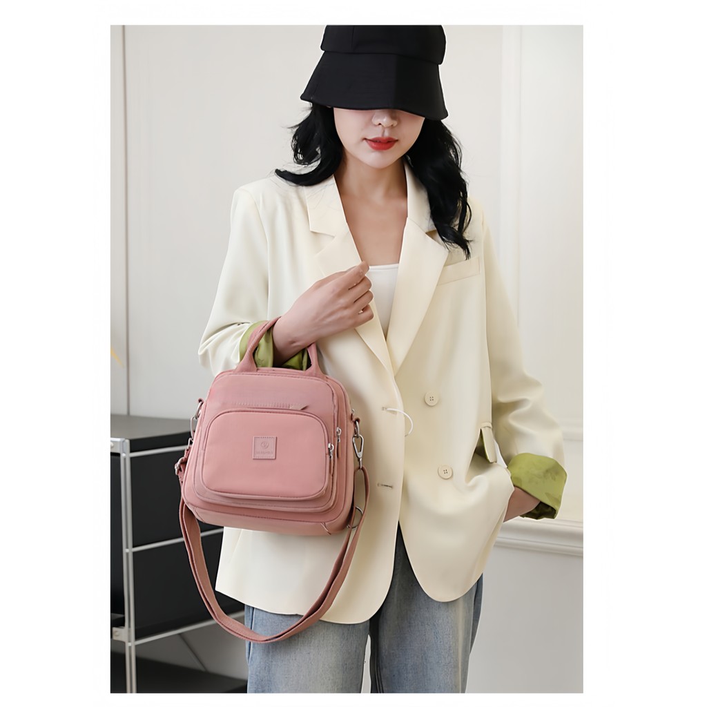 Bolsa feminina nylon impermeável vira mochila transversal tiracolo leve 3em1 738 Yobel
