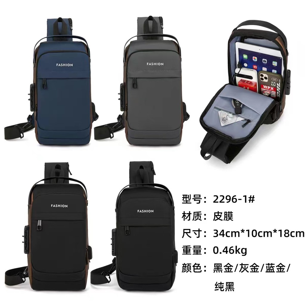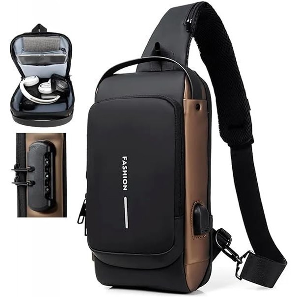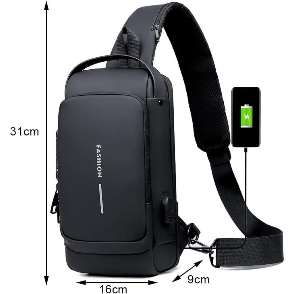 Mochila de Ombro Transversal Compacta Unilateral USB Trava de Código Á prova d'água