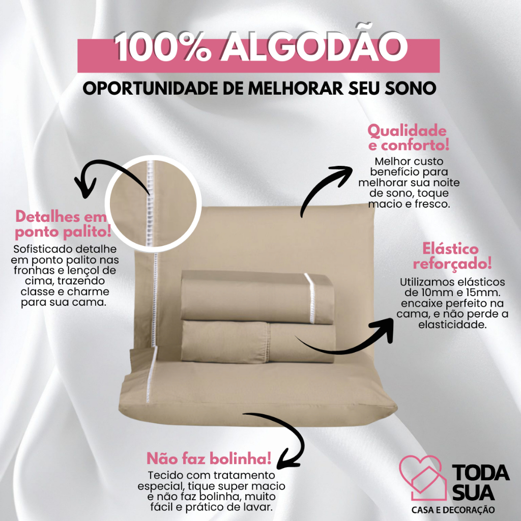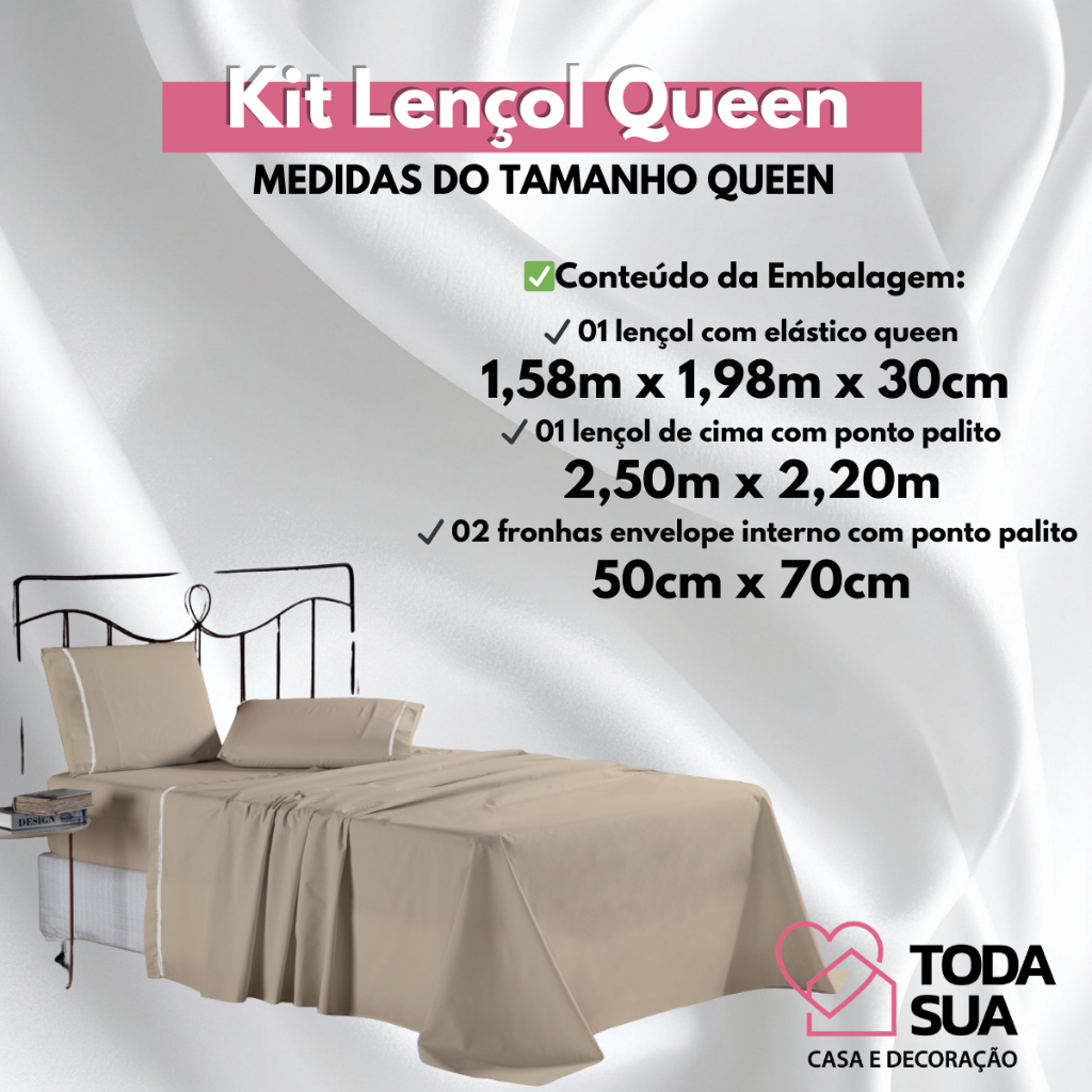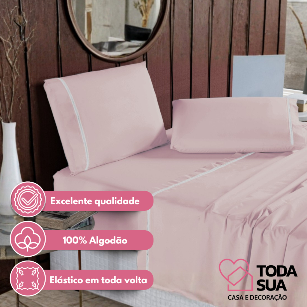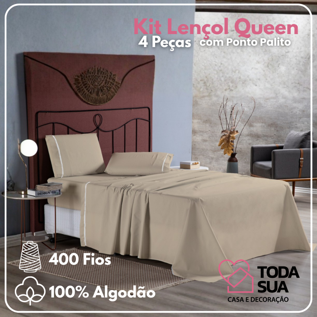 Jogo de Lençol Queen 4 Peças 400 Fios 100% Algodão