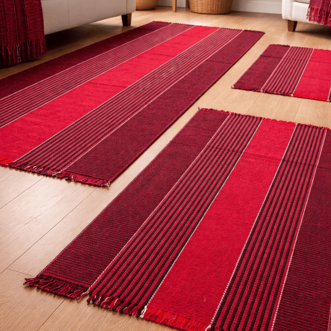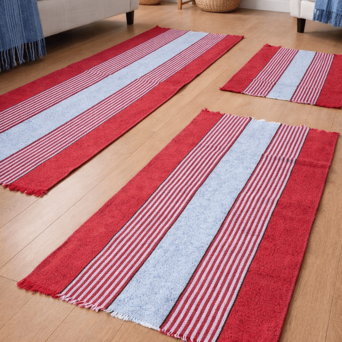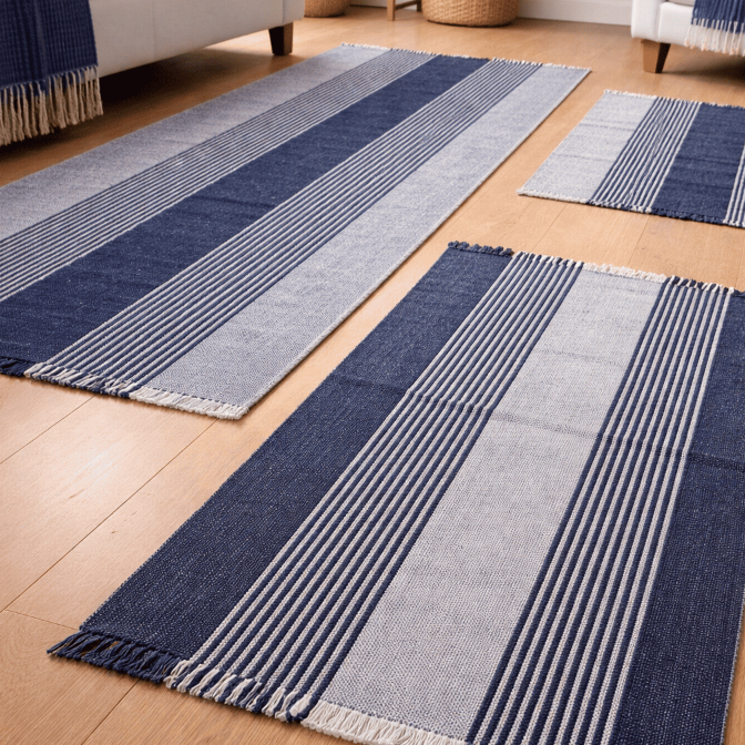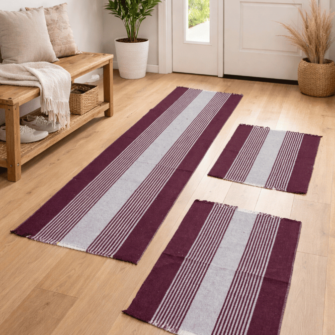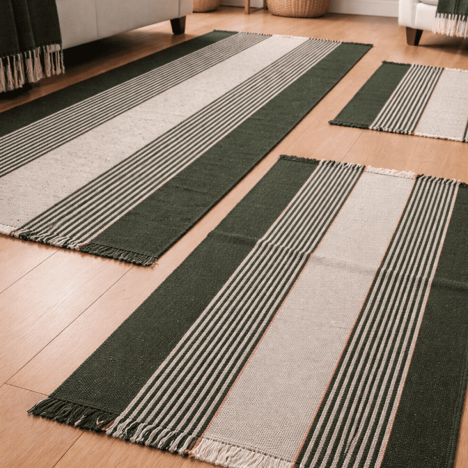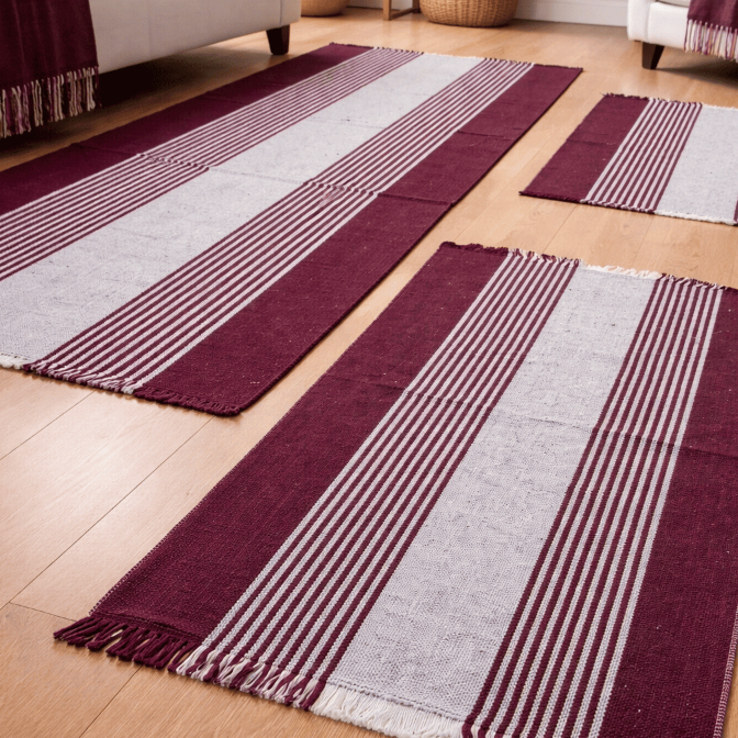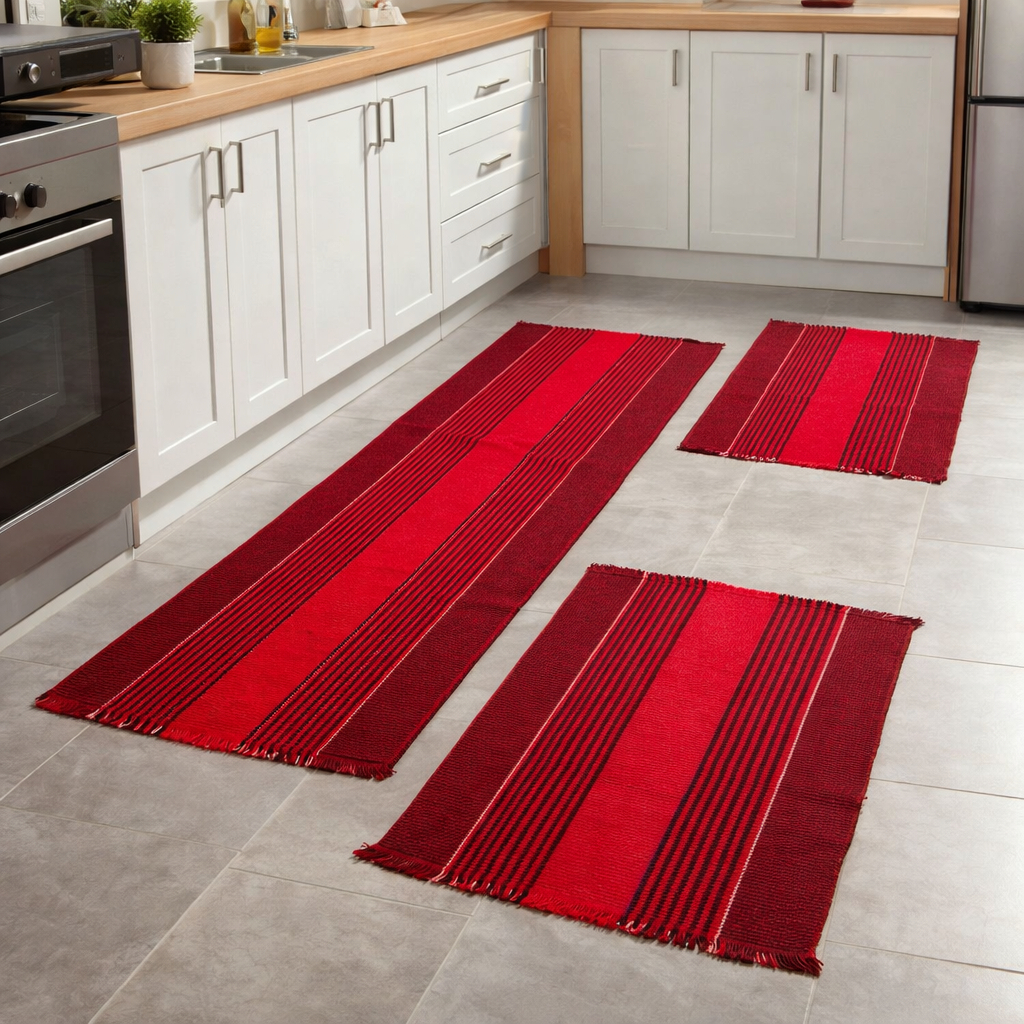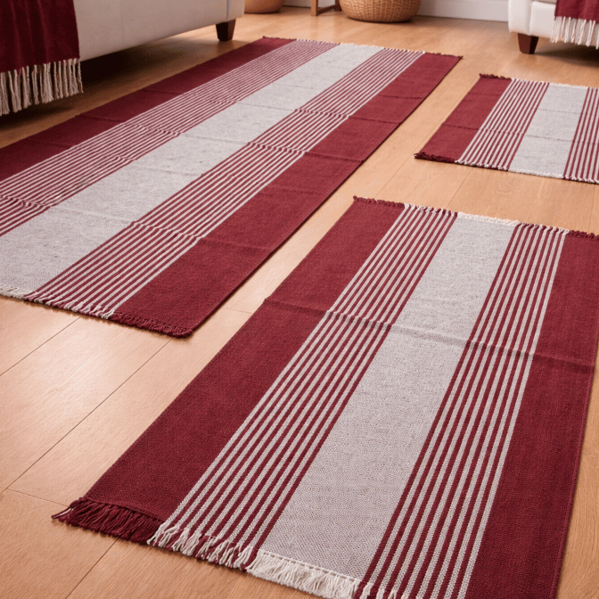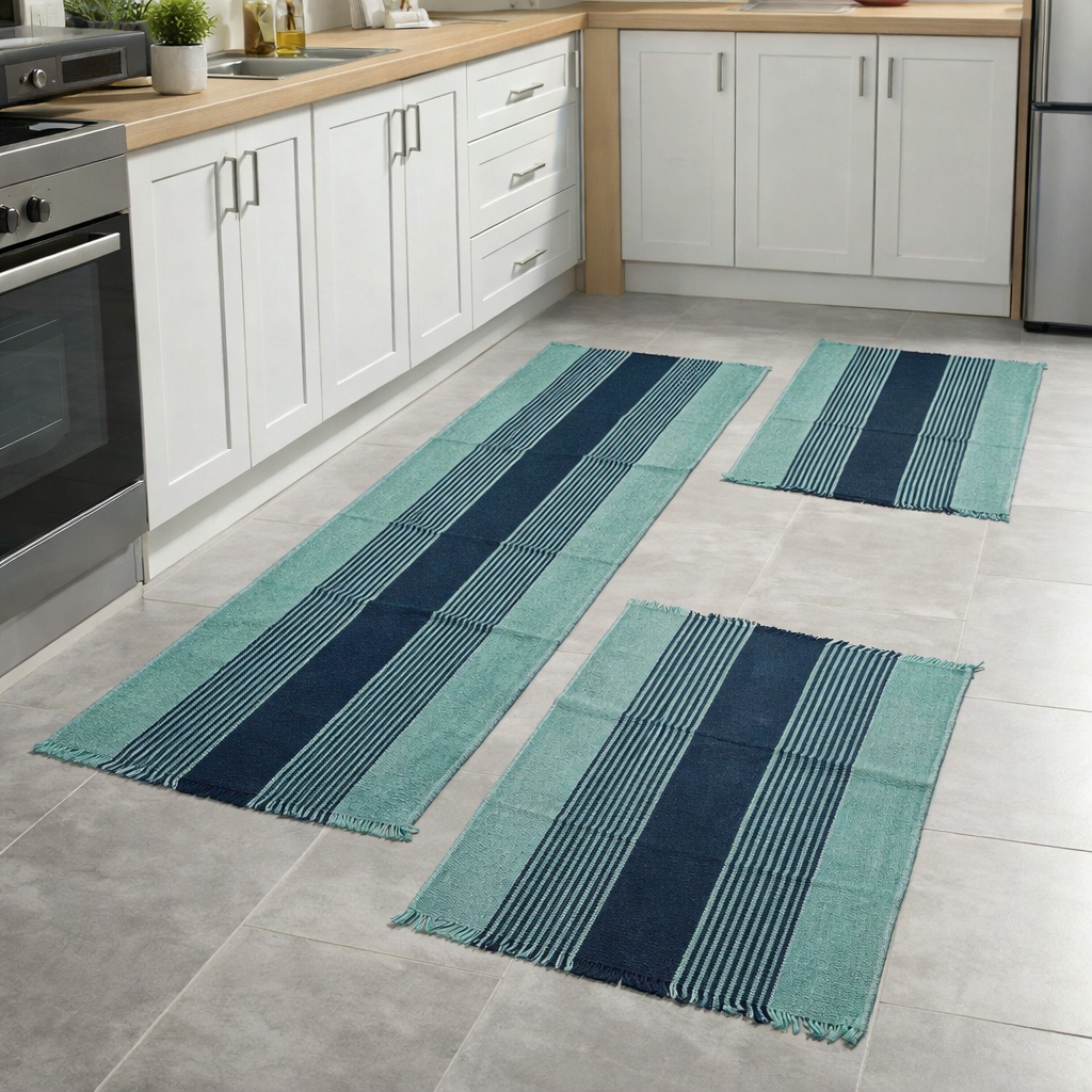 Jogo De Tapete 3 Peças Passadeira Para Cozinha Sala Banheiro Decoração Liso Listrado De Algodão
