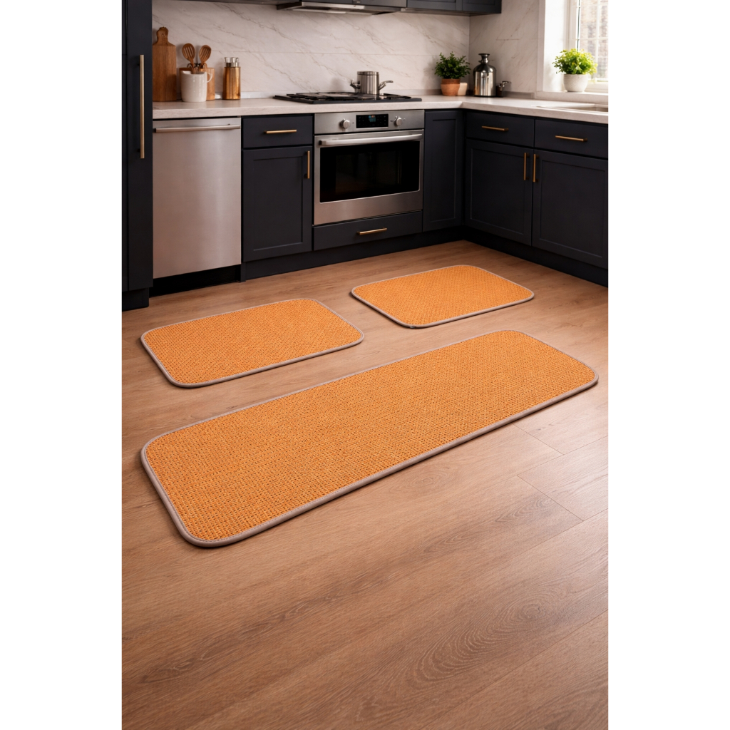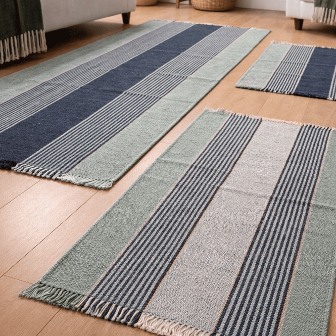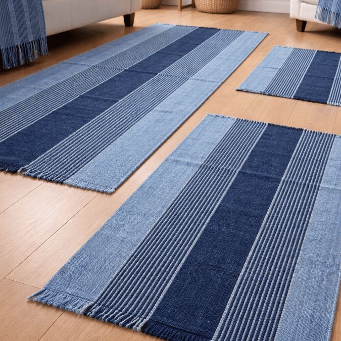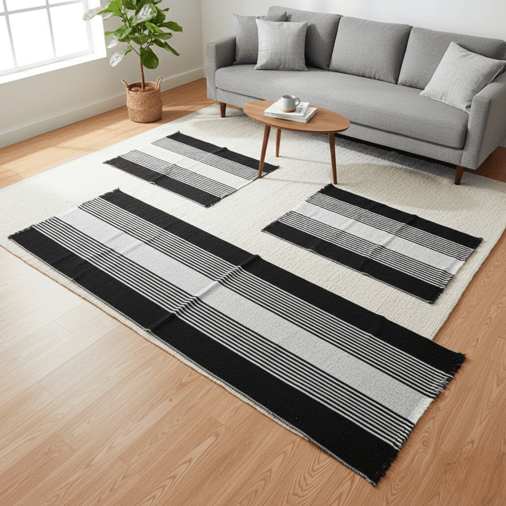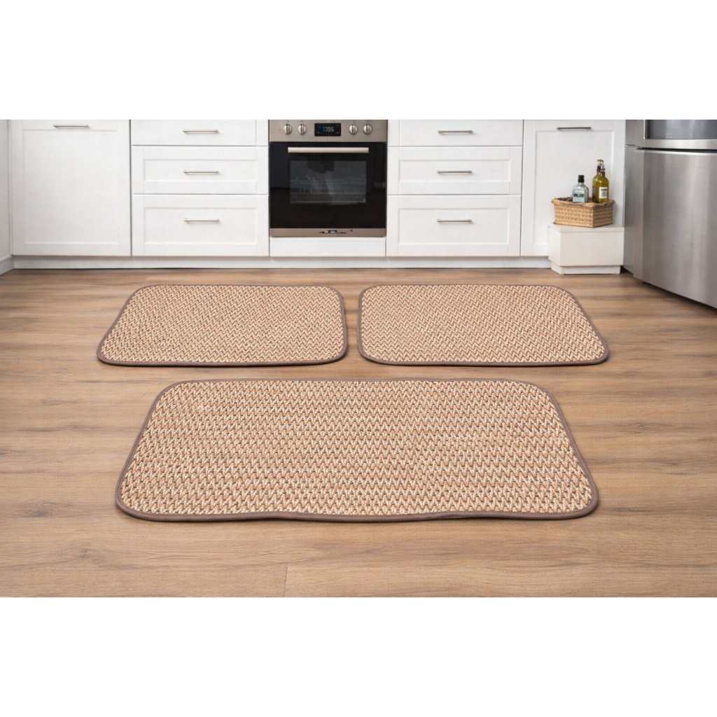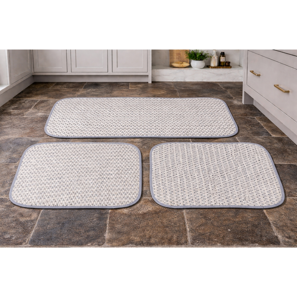 Jogo De Tapete 3 Peças Passadeira Para Cozinha Sala Banheiro Decoração Liso Listrado De Algodão