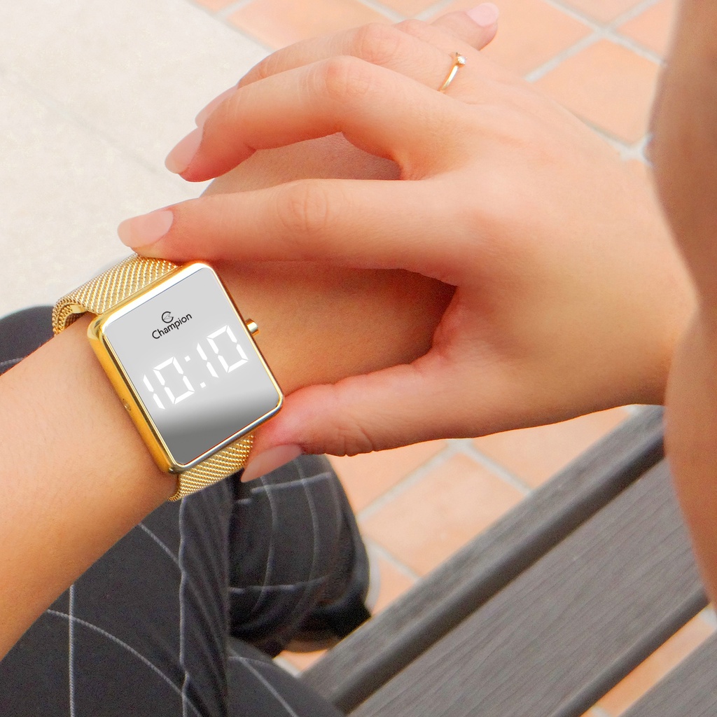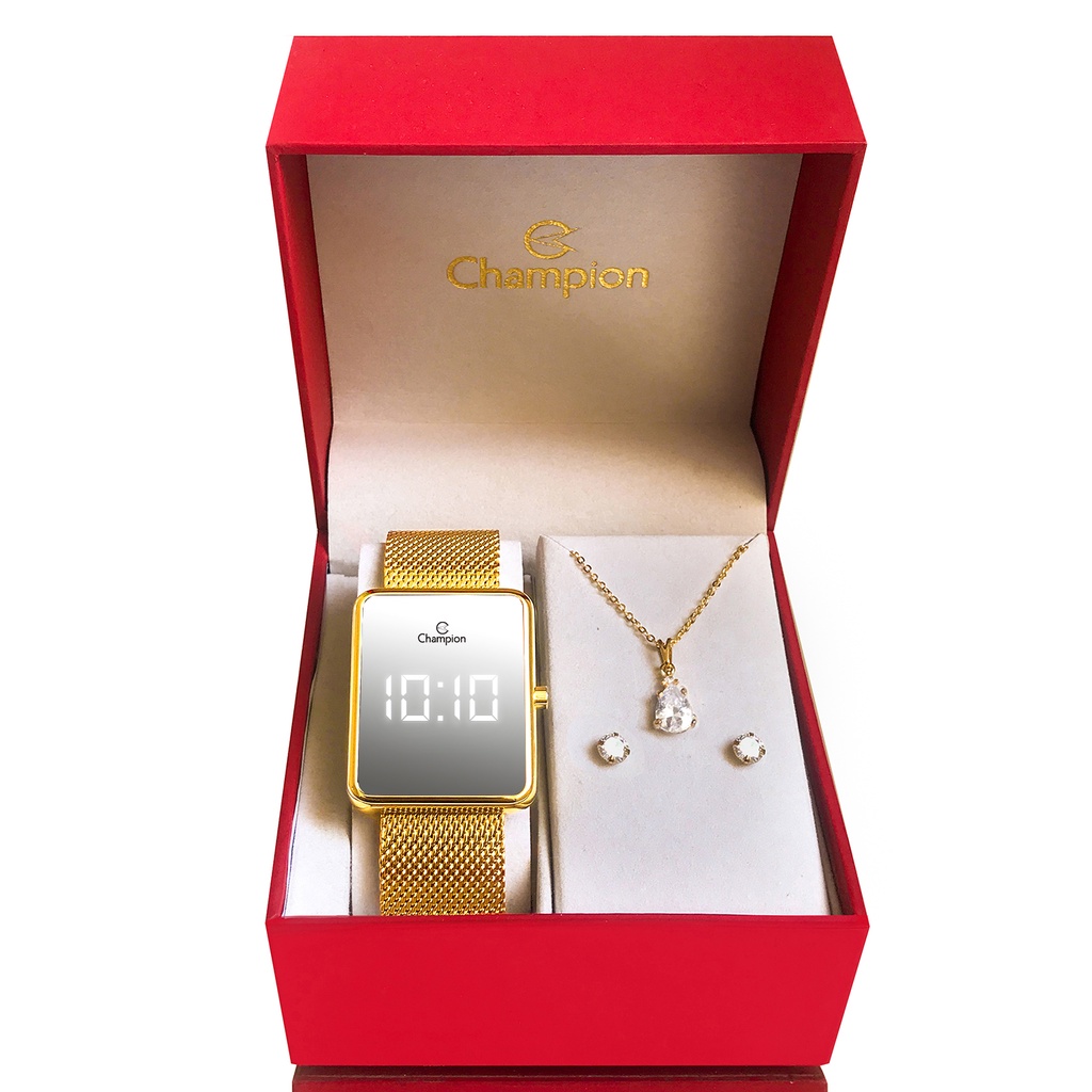 Relógio Champion Feminino Dourado Digital LED Original com garantia de 1 ano acompanha colar e brincos