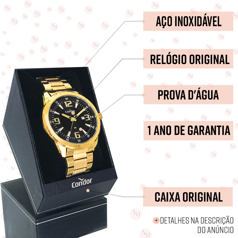 Relógio Masculino Condor Dourado Original Prova Dágua Garantia 1 Ano