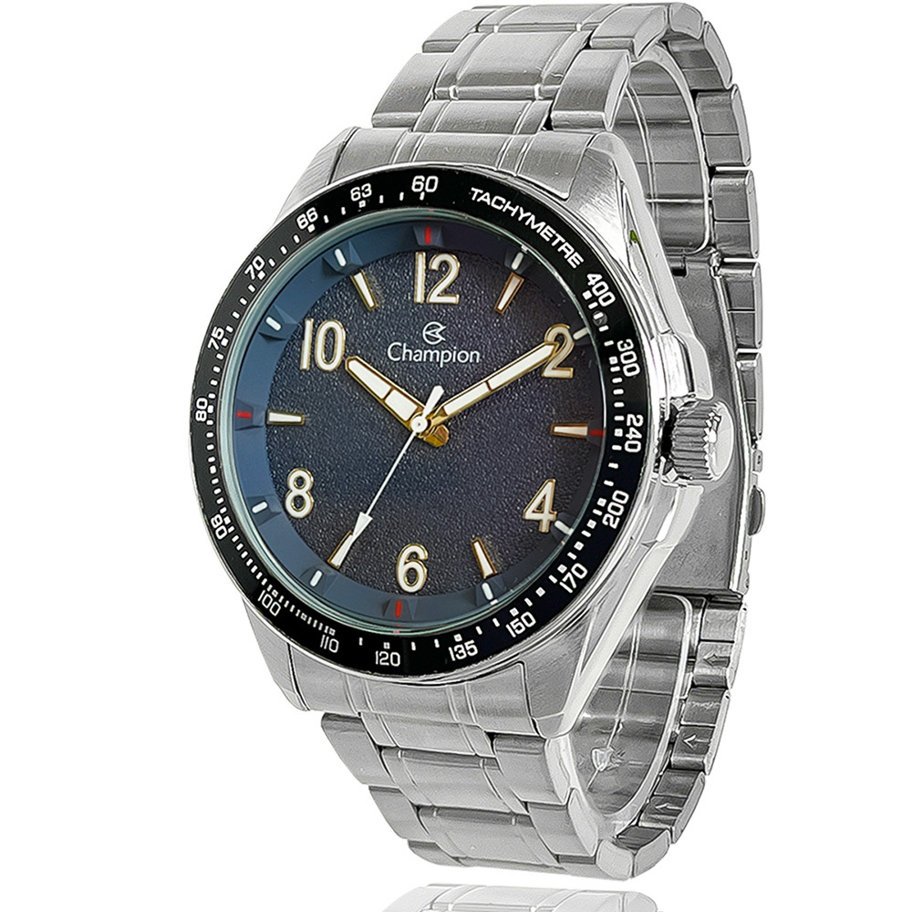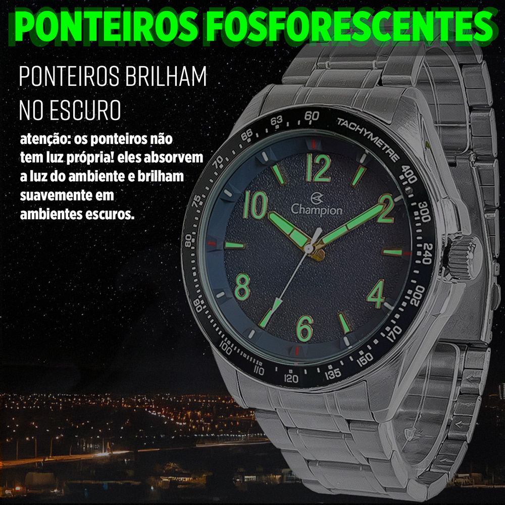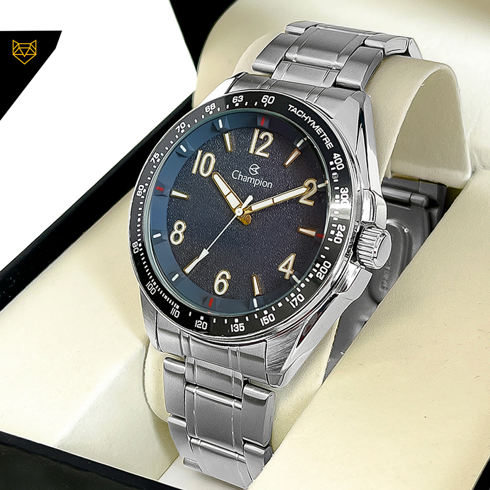 Relógio Champion Masculino Prata Preto Prova d'água com 1 ano de garantia