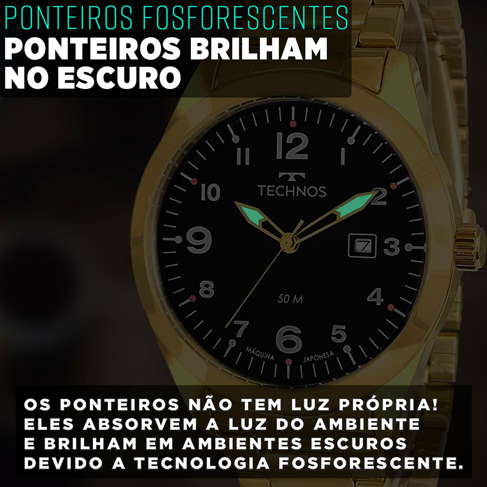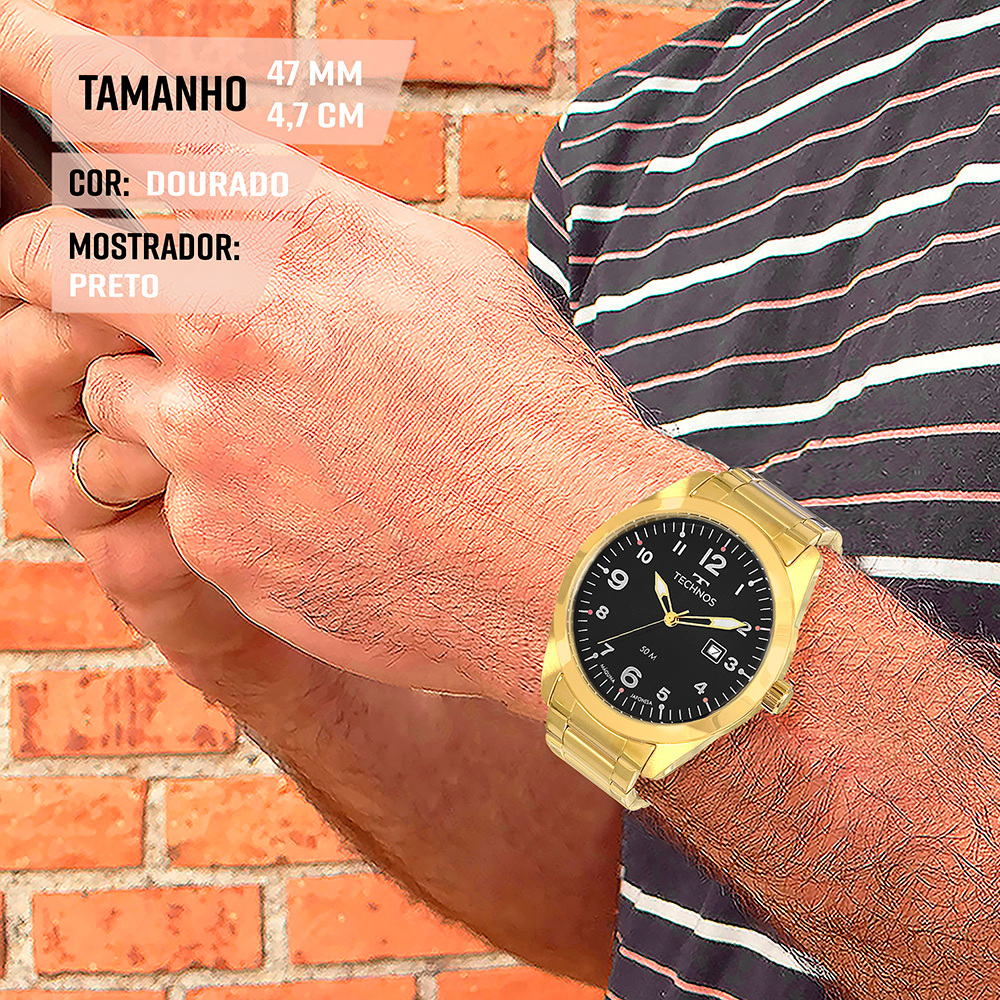 Relógio Technos Masculino Dourado Analógico Prova Dágua Luxo
