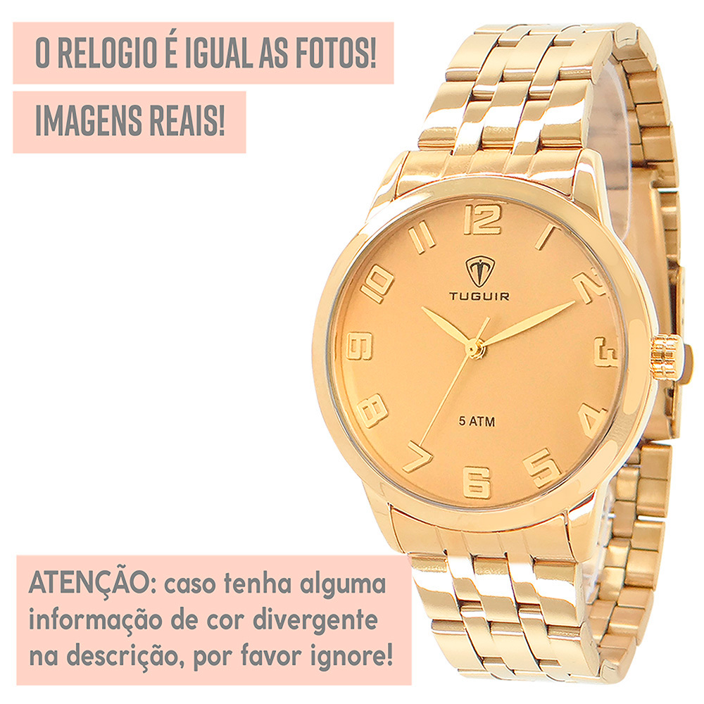 Relógio Feminino Dourado Tuguir Com garantia de 1 ano Original Prova D'água