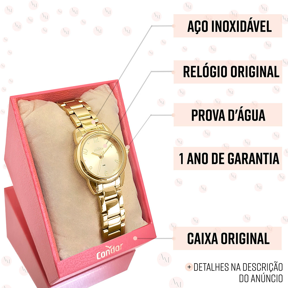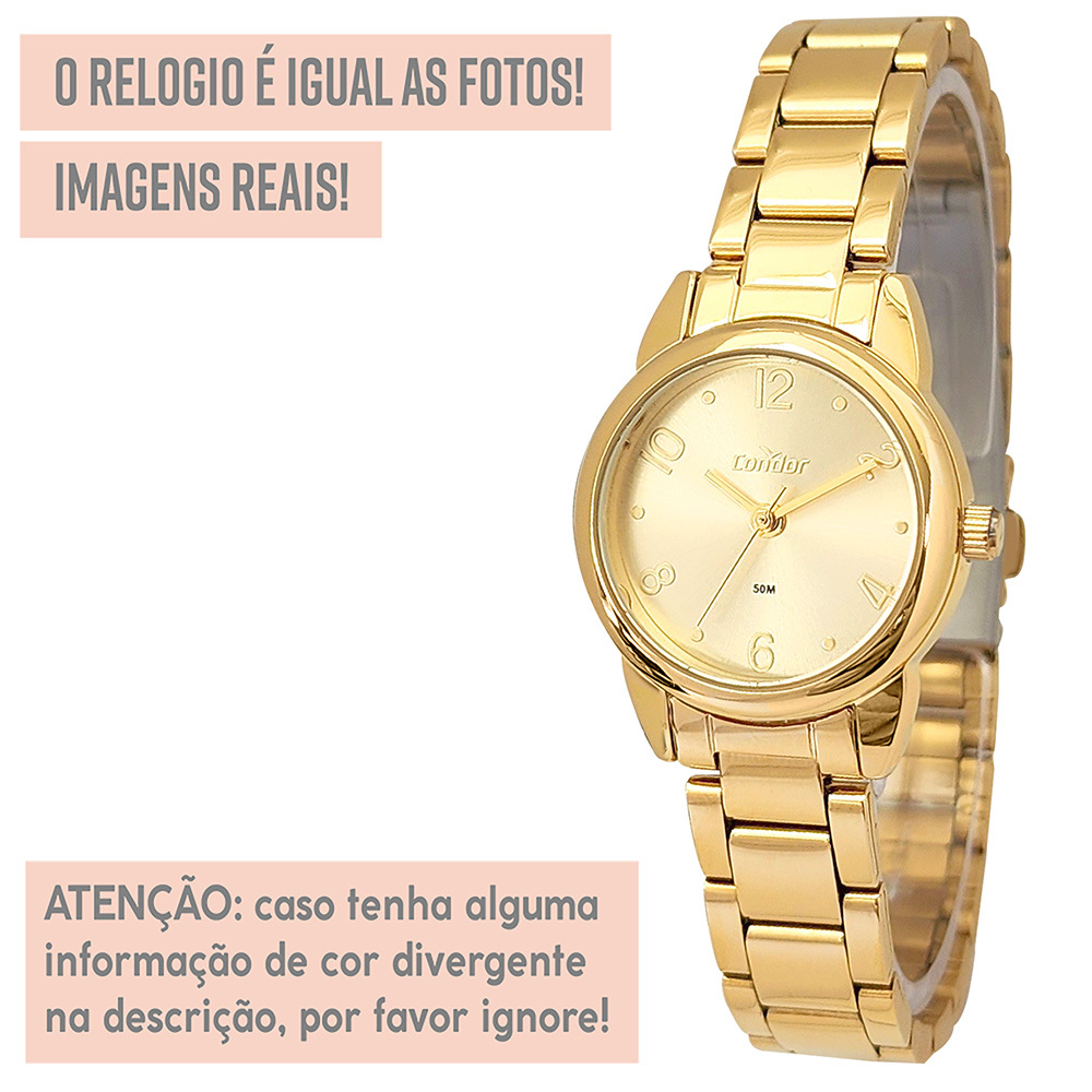 Relógio Feminino Condor Dourado Original Top 1 Ano Garantia