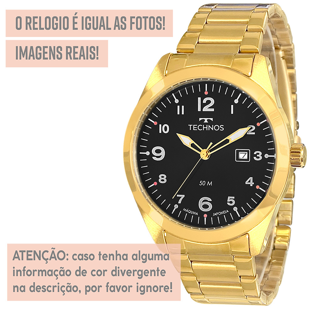 Relógio Technos Masculino Original Dourado Prova D'água Top