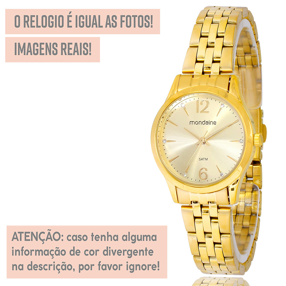 Relógio Mondaine Feminino Dourado Original Luxo Prova Dágua