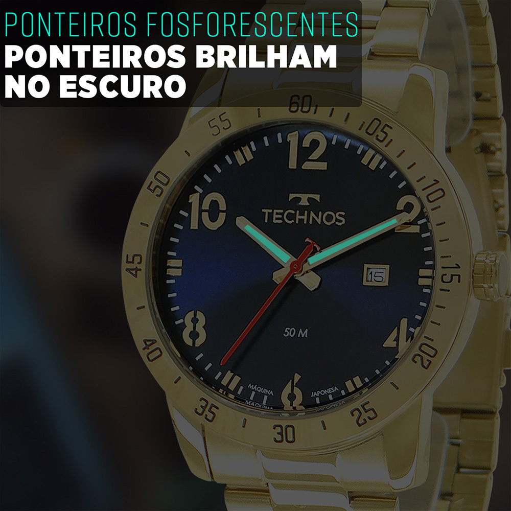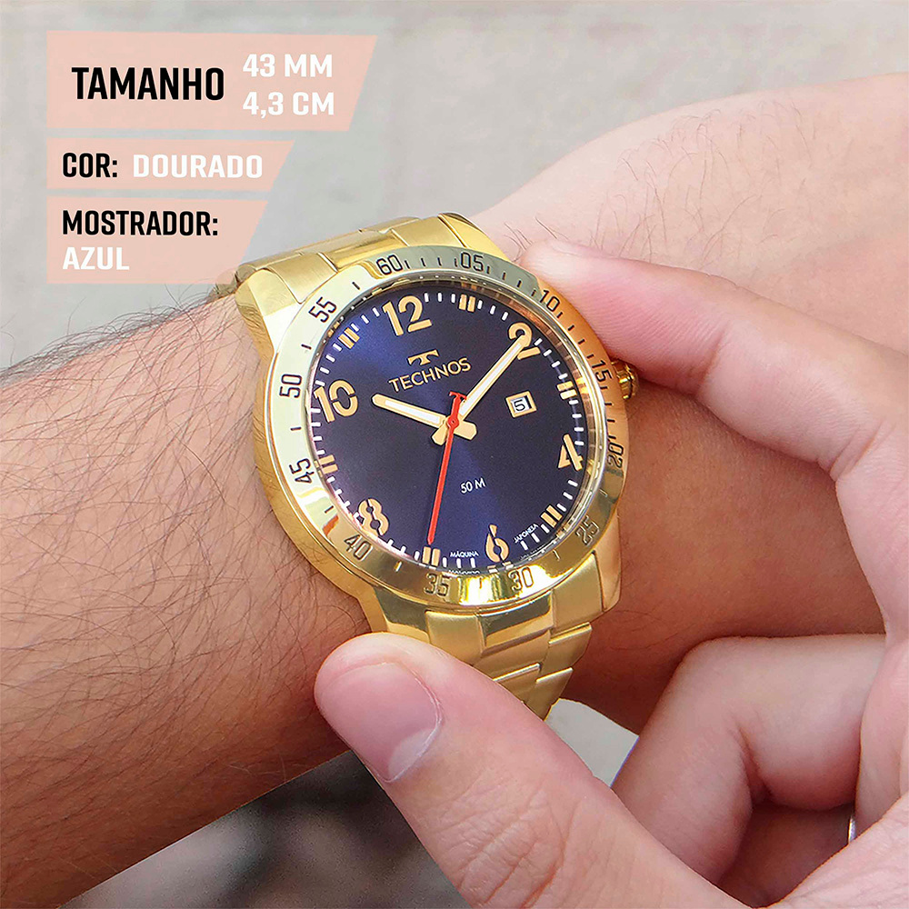 Relógio Technos Dourado Masculino Original 1 Ano De Garantia