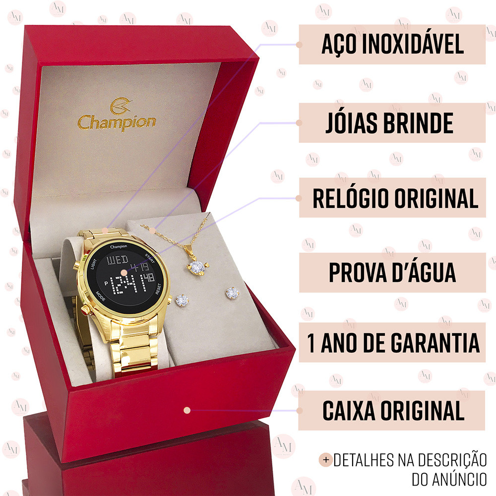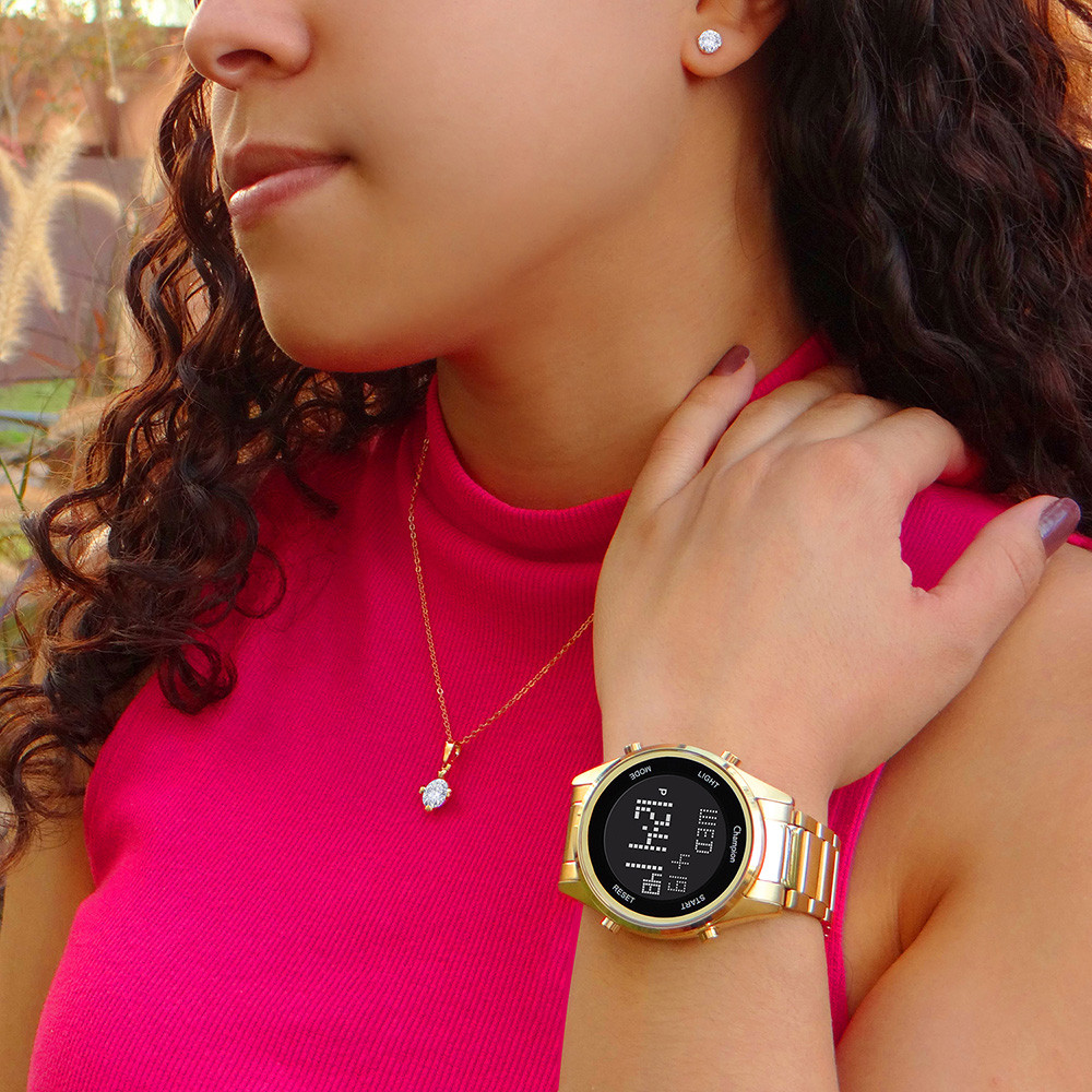 Relógio Digital Feminino Champion Dourado 1 Ano De Garantia