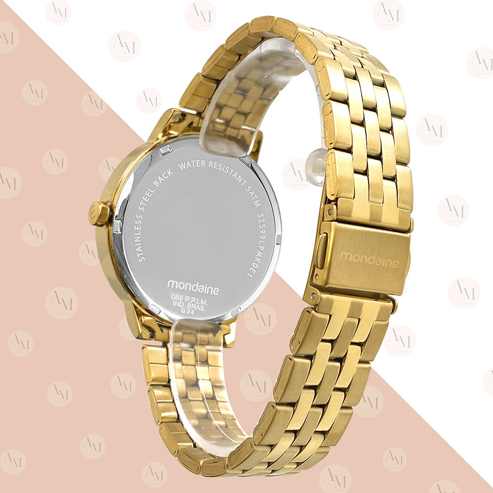 Relógio Feminino Dourado Mondaine 1 Ano De Garantia Original