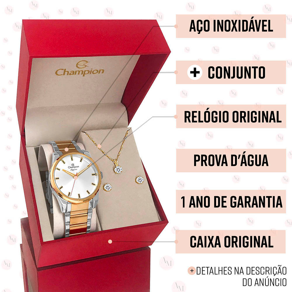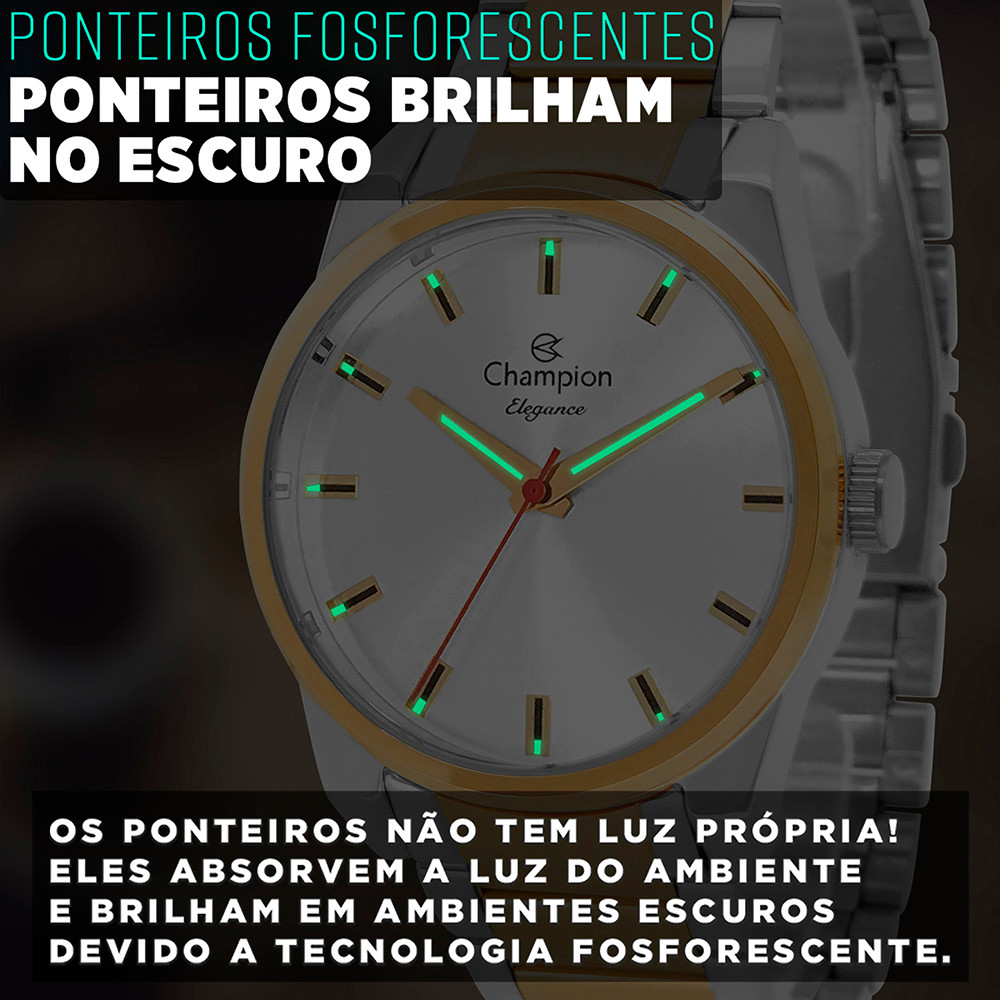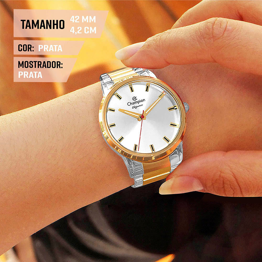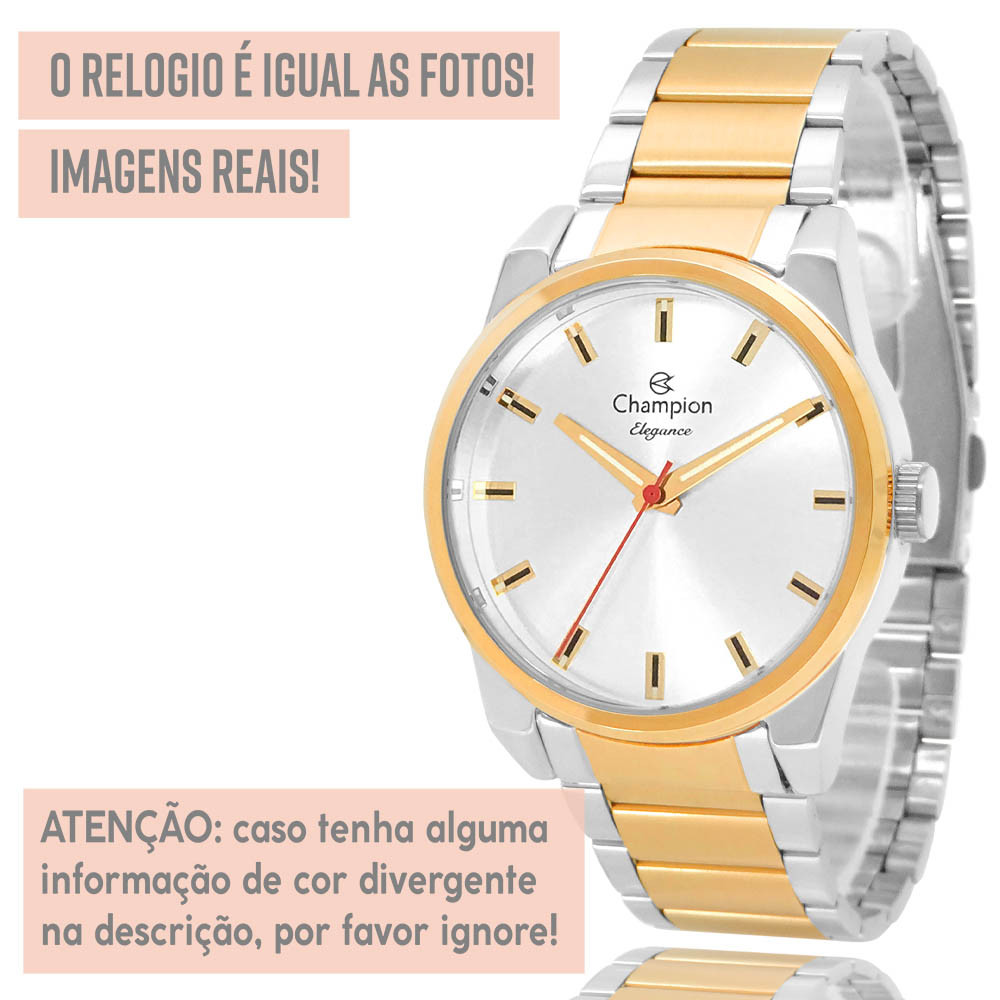 Relógio Feminino Champion Prata e Dourado 1 Ano de Garantia