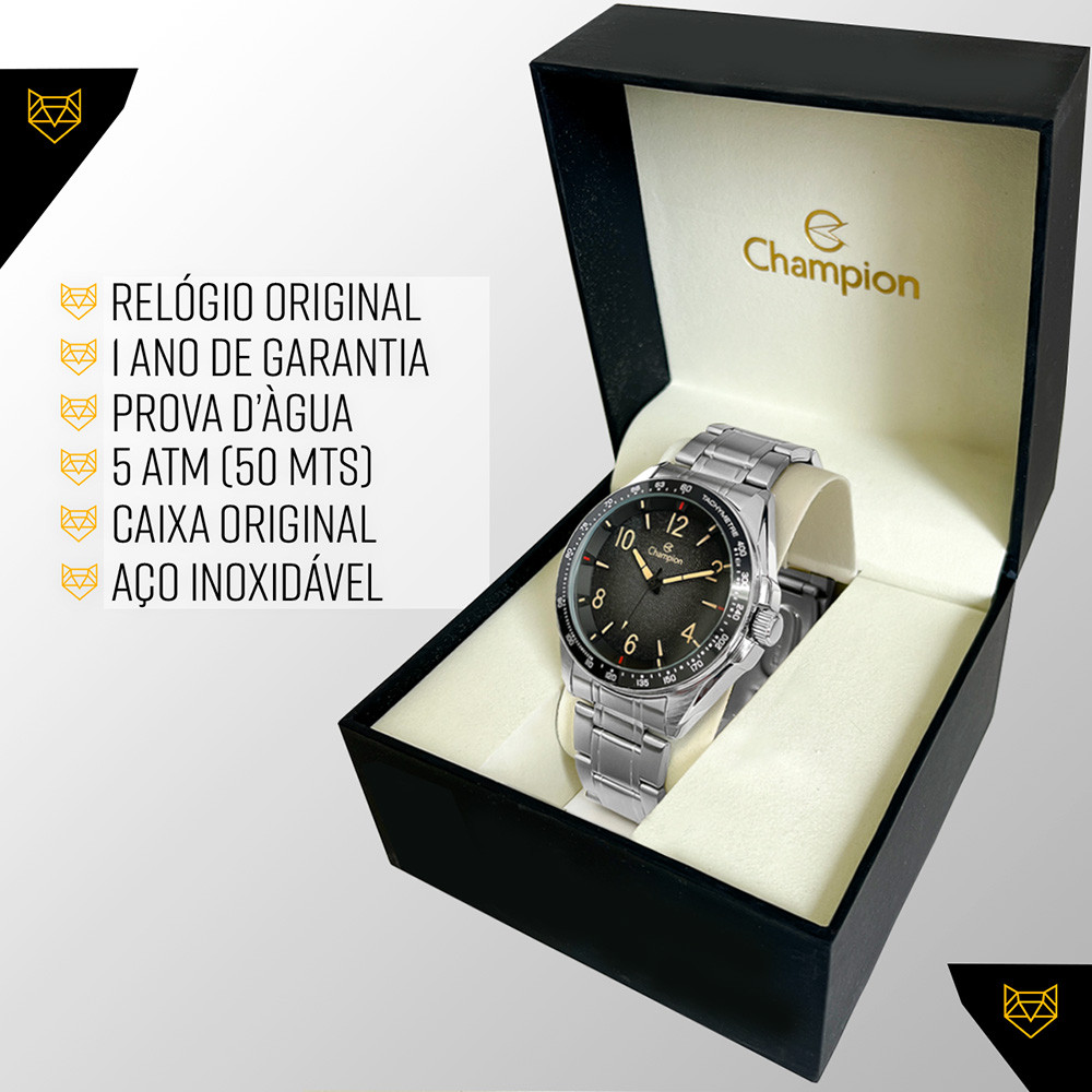 Relógio Champion Masculino Prata Prova Dágua Original Luxo